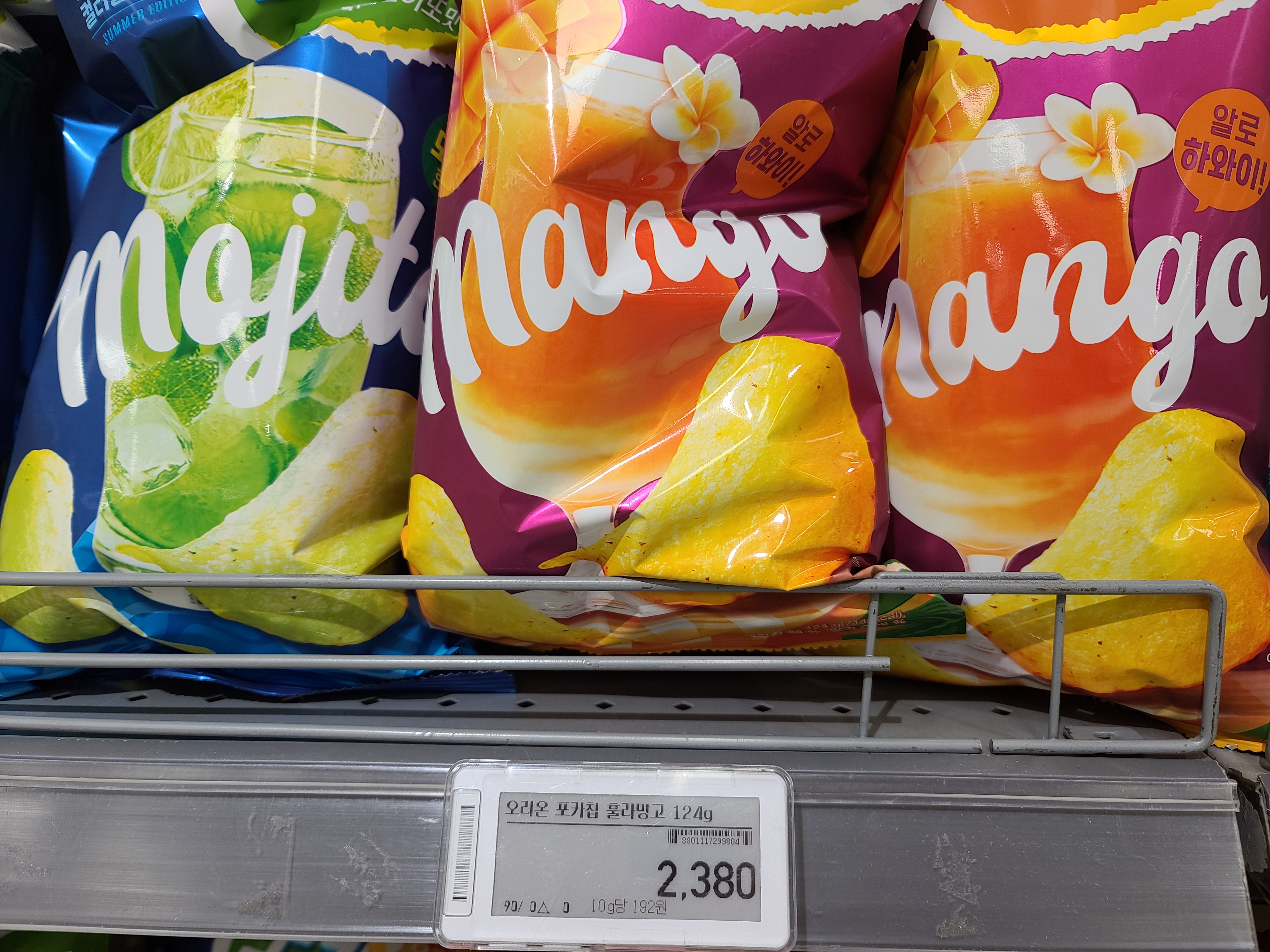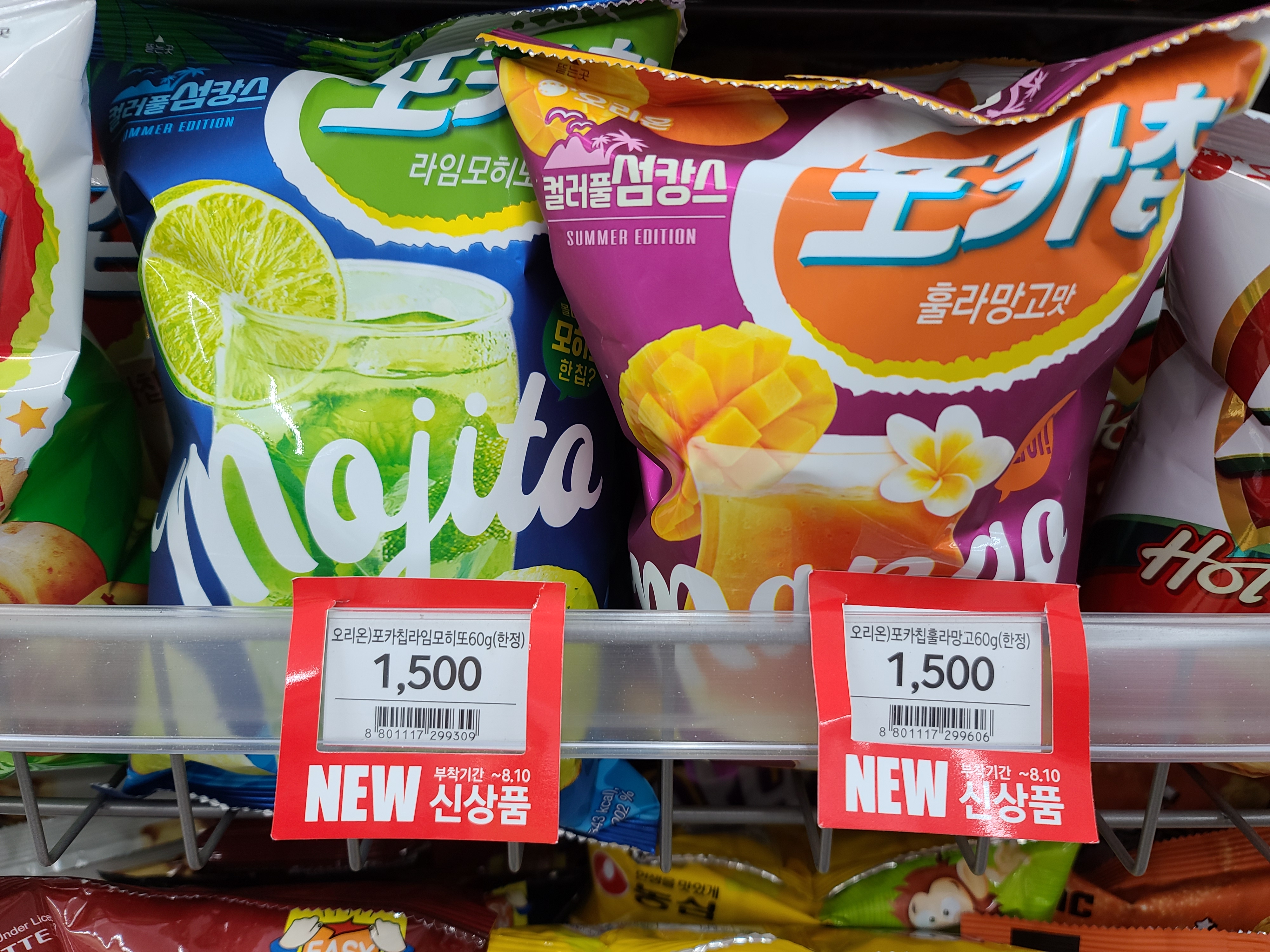신기하게도 여기에는 포카칩 라임모히또 맛, 포카칩 홀라망고 맛을 팔고 있었습니다.