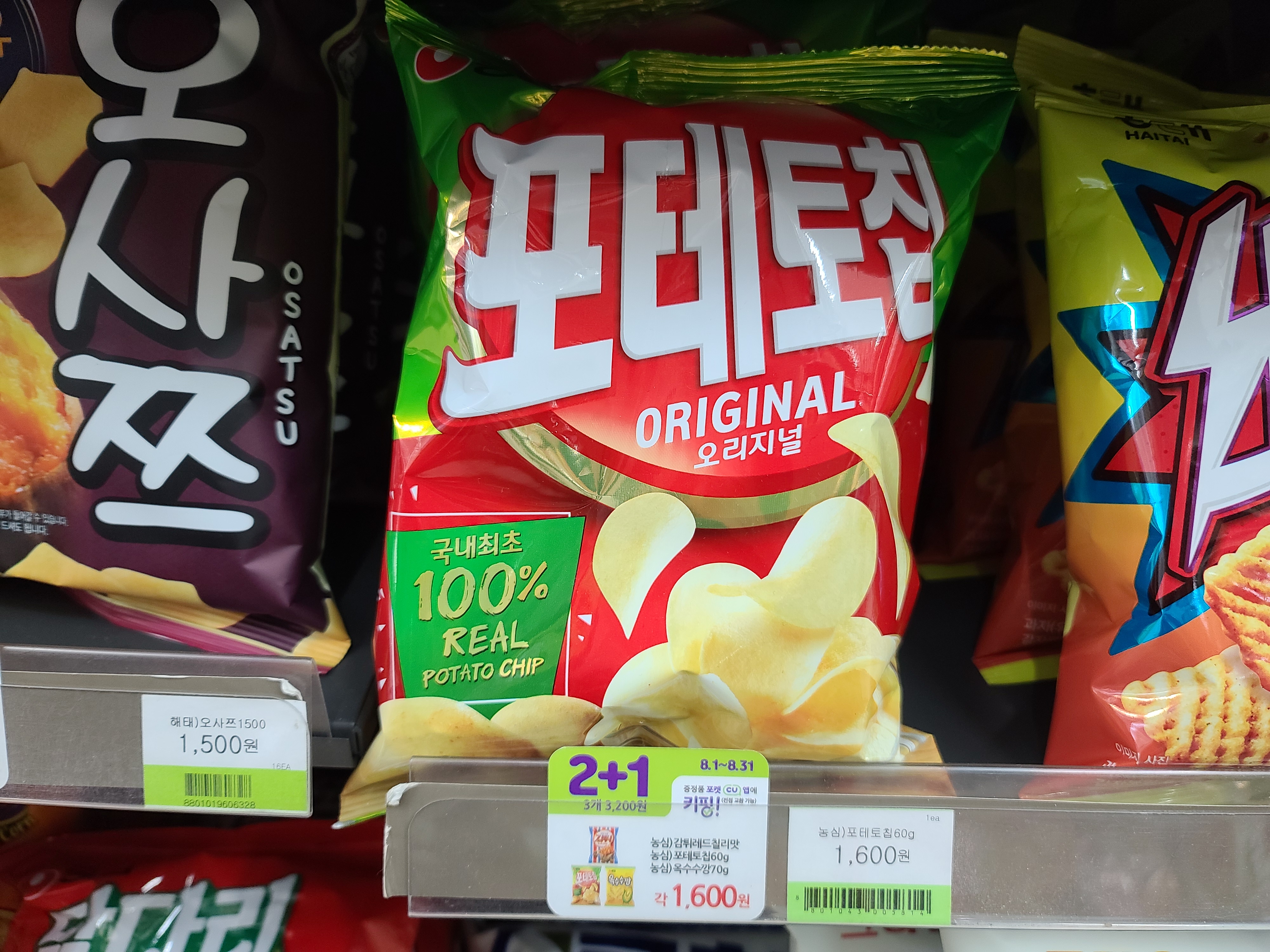 그래도 포테토칩은 포카칩과는 다르게 2+1 행사를 하는군요.