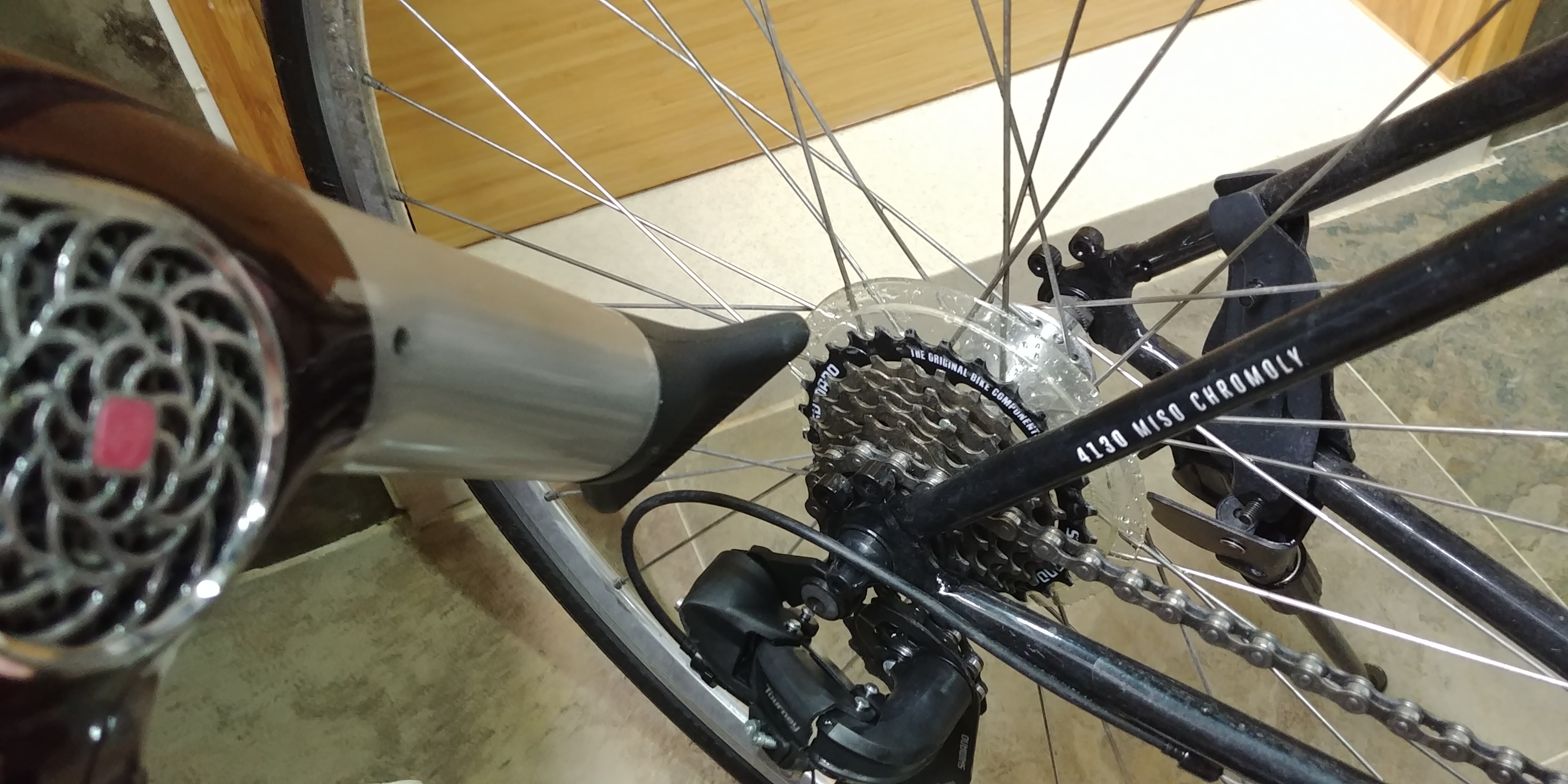 다른 좋은 방법이 있으신 분들은 그 방법대로 해주시면 됩니다. 자전거 체인이 쇠로 되어있기 때문에 제대로 말려주지 않으면 녹슬것 같아서 약 10분간 충분히 말려줬습니다.
