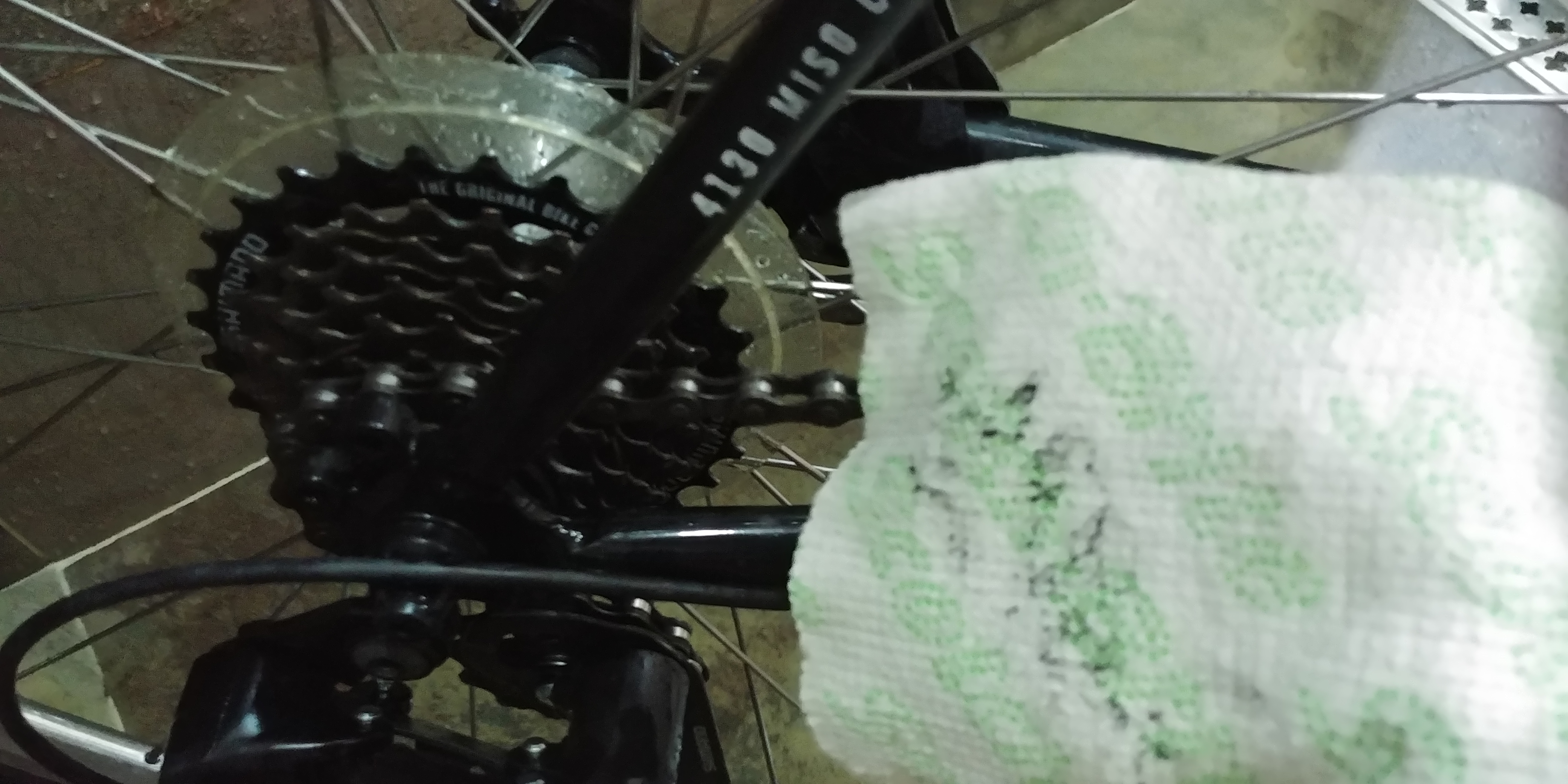 아얘 체인을 분리해서 체인 클리너에 담가두지 않는 한 제대로 체인을 청소하긴 어렵습니다. 하지만 저는 체인을 분리하고 다시 낄 줄도 모르고 그 과정이 상당히 귀찮다는 것을 알기 때문에 그냥 이렇게 청소했습니다.