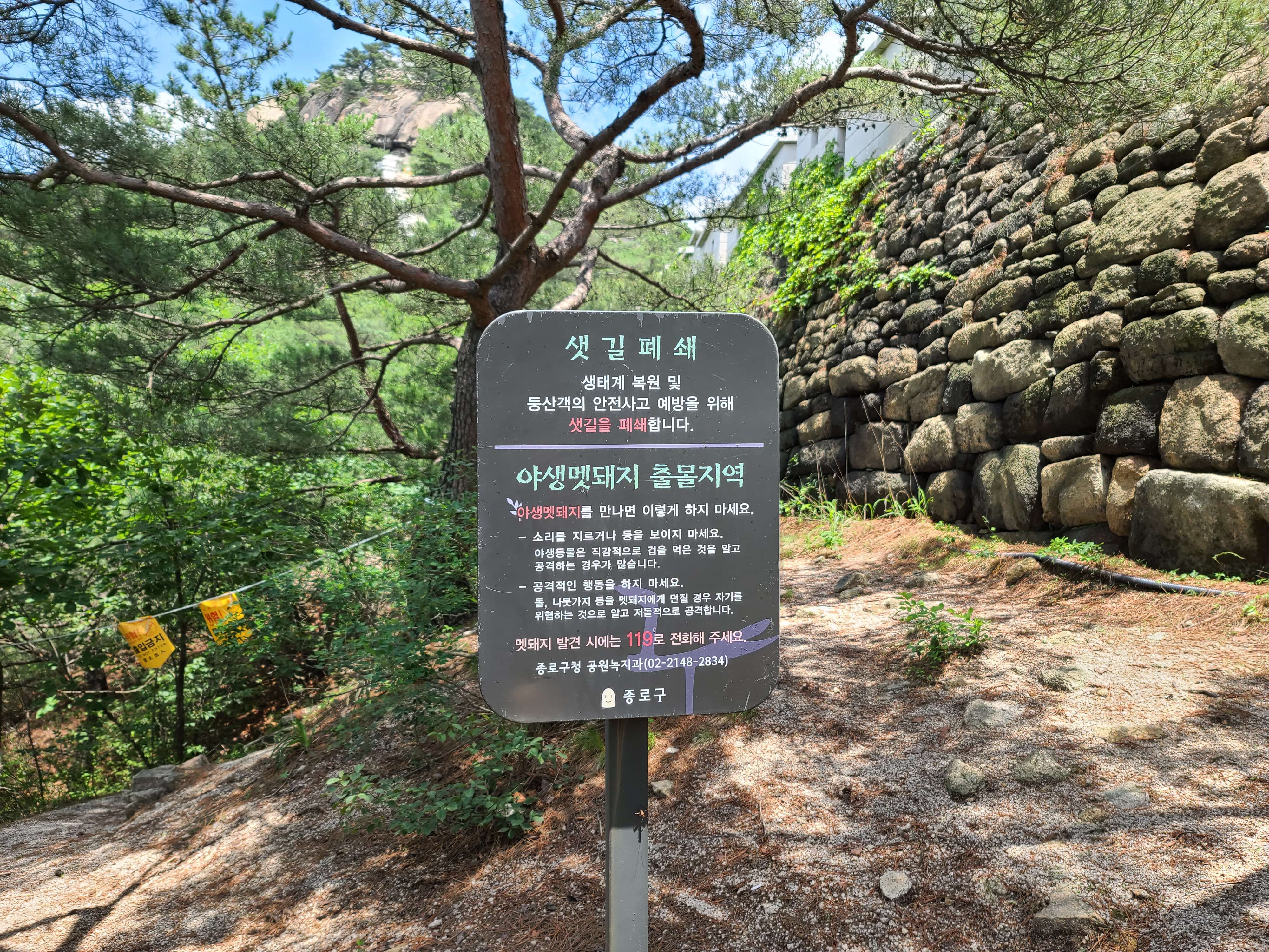 인왕산에는 야생 멧돼지가 출몰하나봅니다.