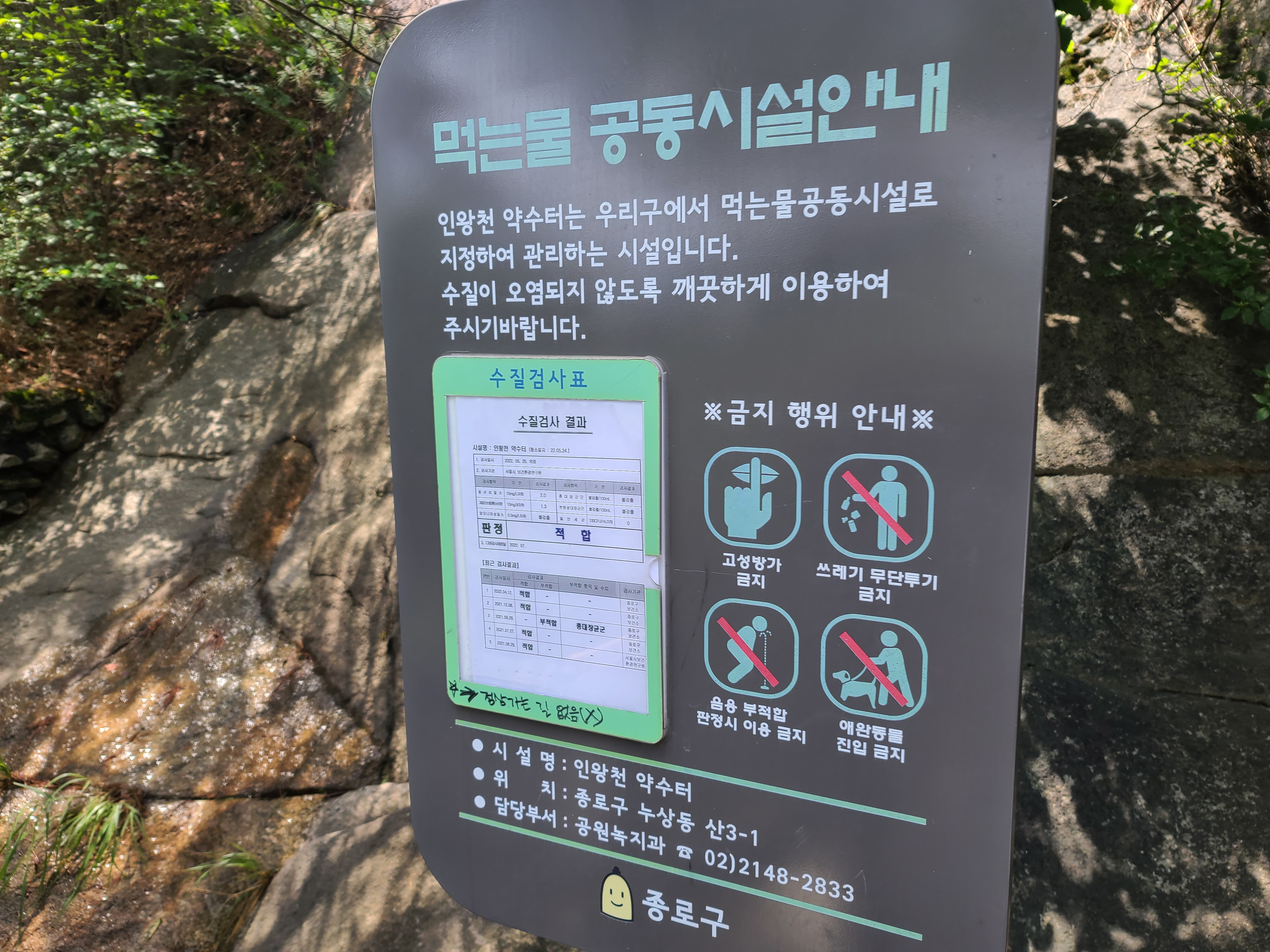 인왕산 정상에서 경복궁역쪽으로 내려가다보면, 이렇게 약수터도 나옵니다.