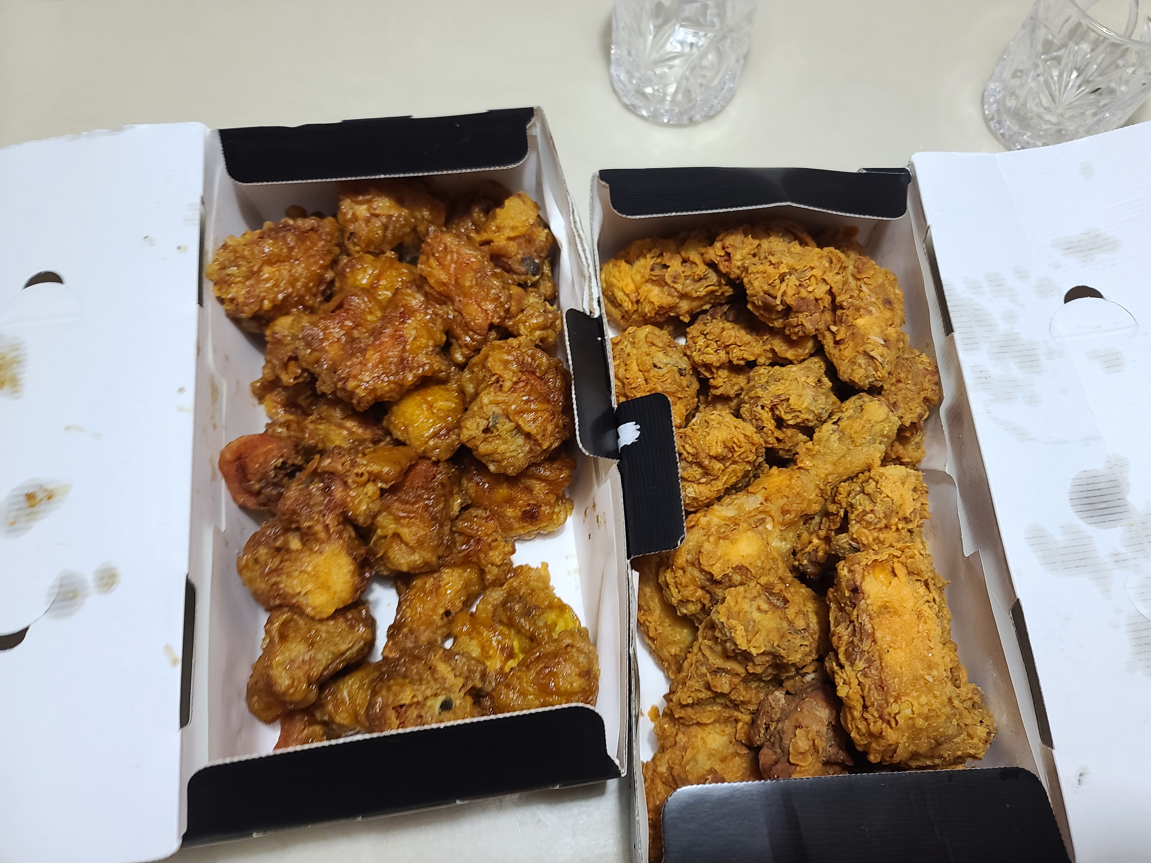 저는 허니 오리지널 1마리, 리얼 후라이드 1마리씩 시켰습니다.