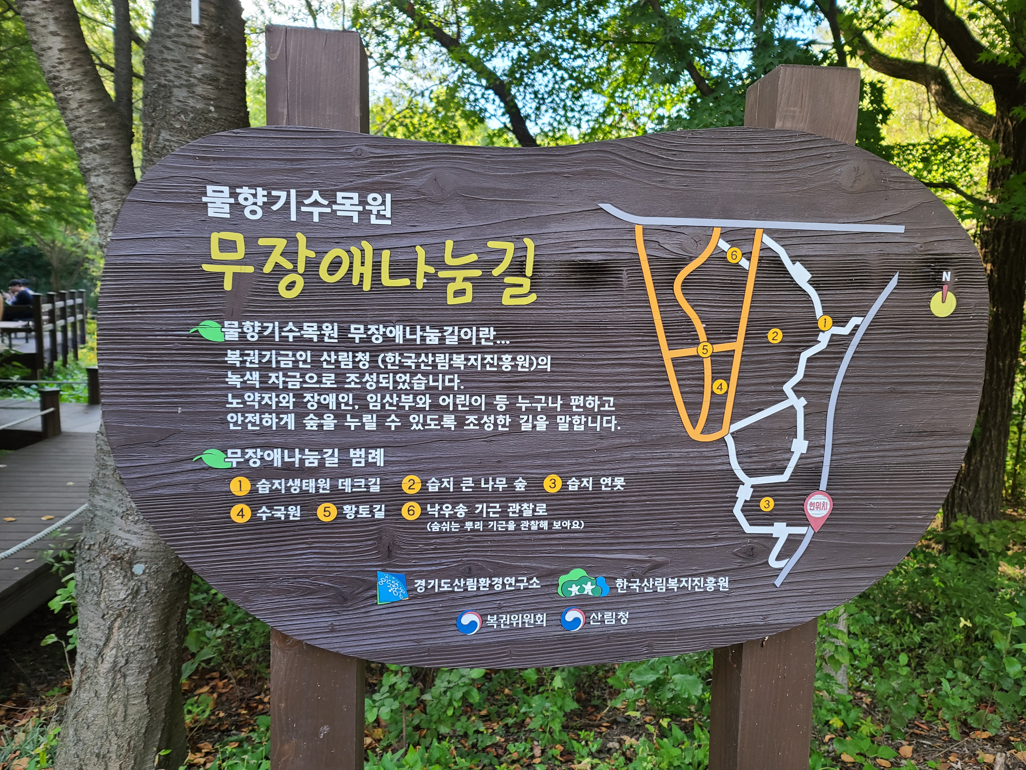 물향기수목원 무장애나눔길은 남녀노소 누구나 편하고 안전하게 숲을 누릴 수 있도록 조성한 길이라고 합니다.