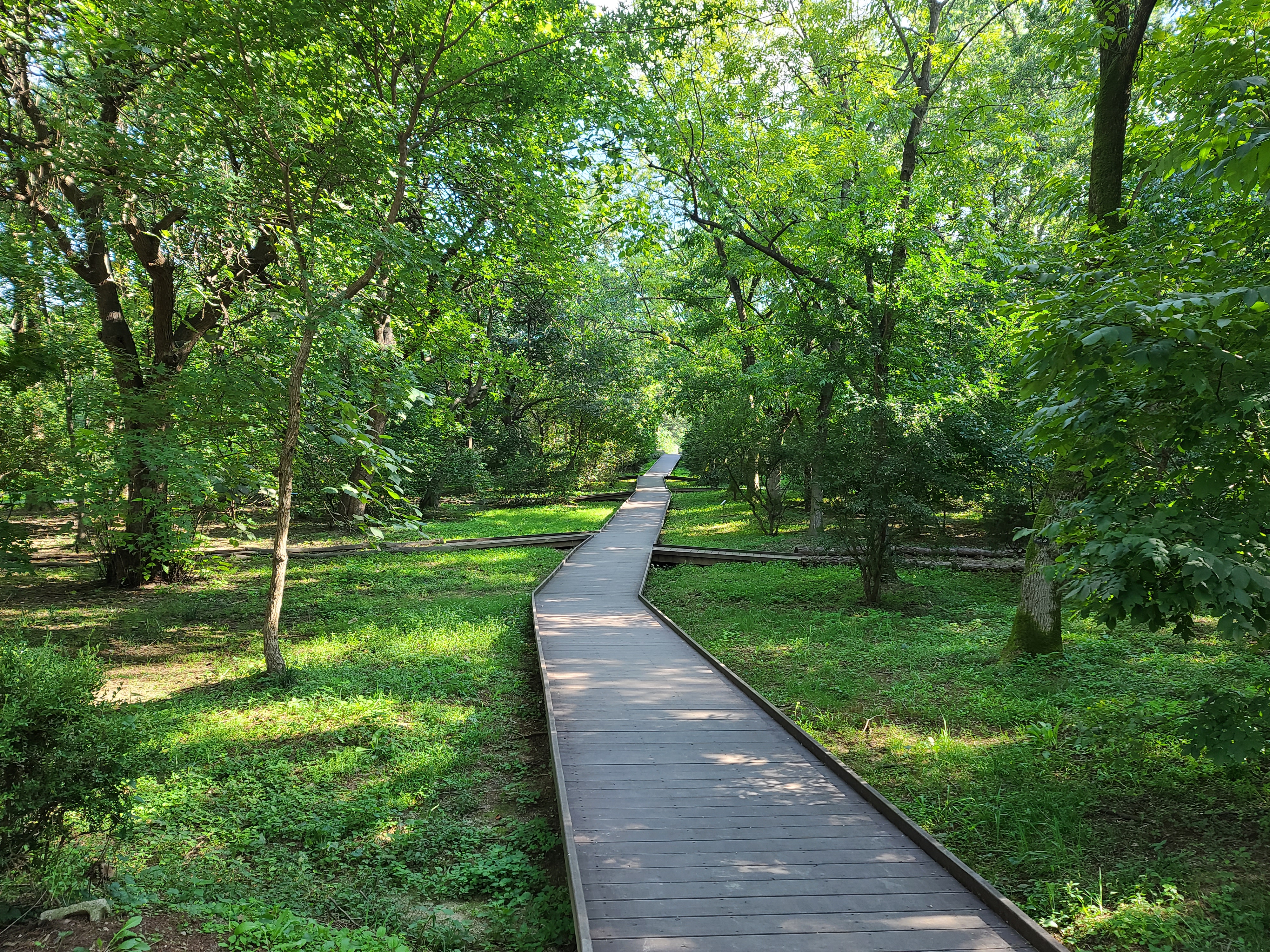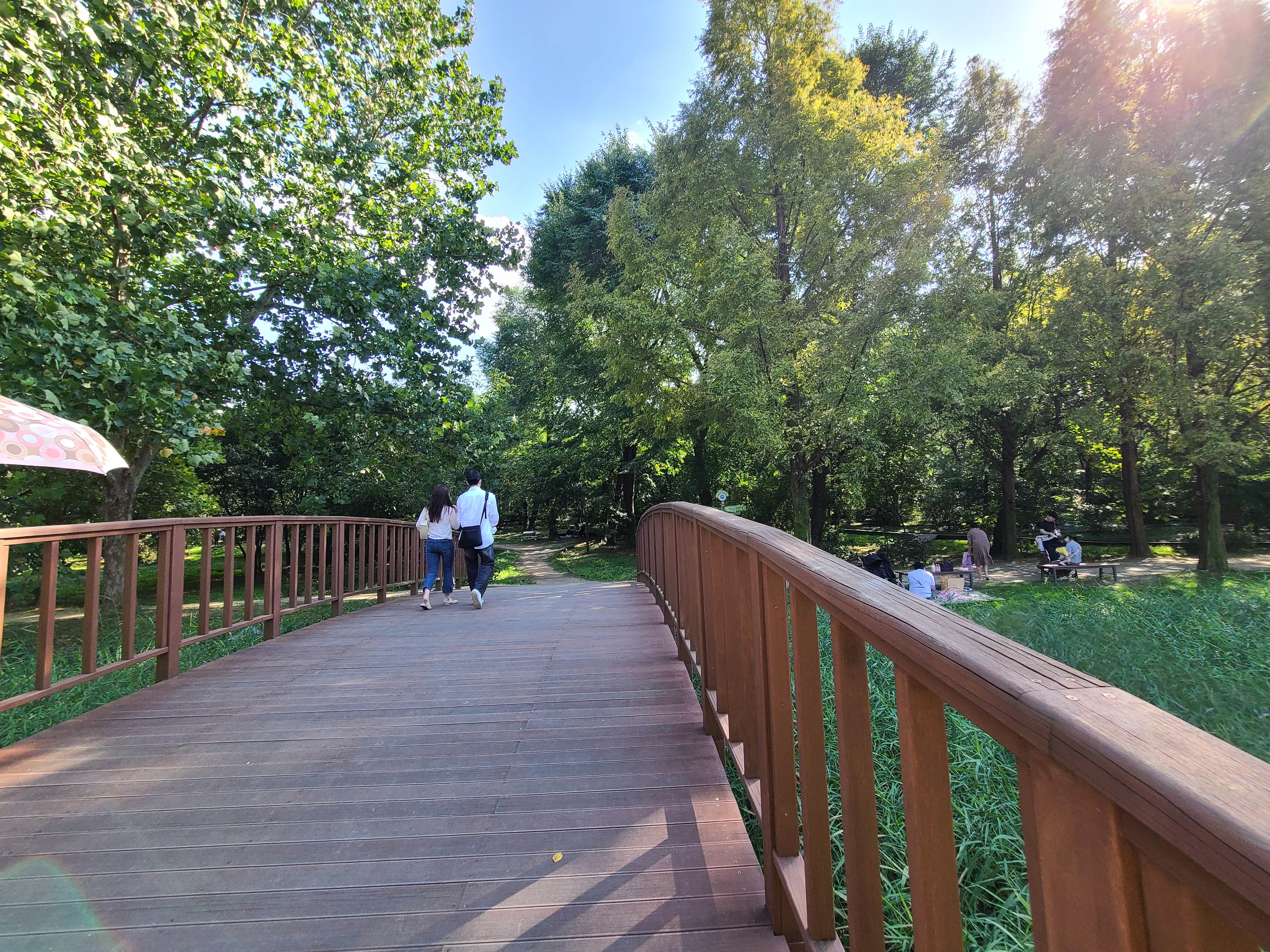 메타세콰이어 길 옆에는 이런식으로 나무 데크길이 놓여져 있습니다.