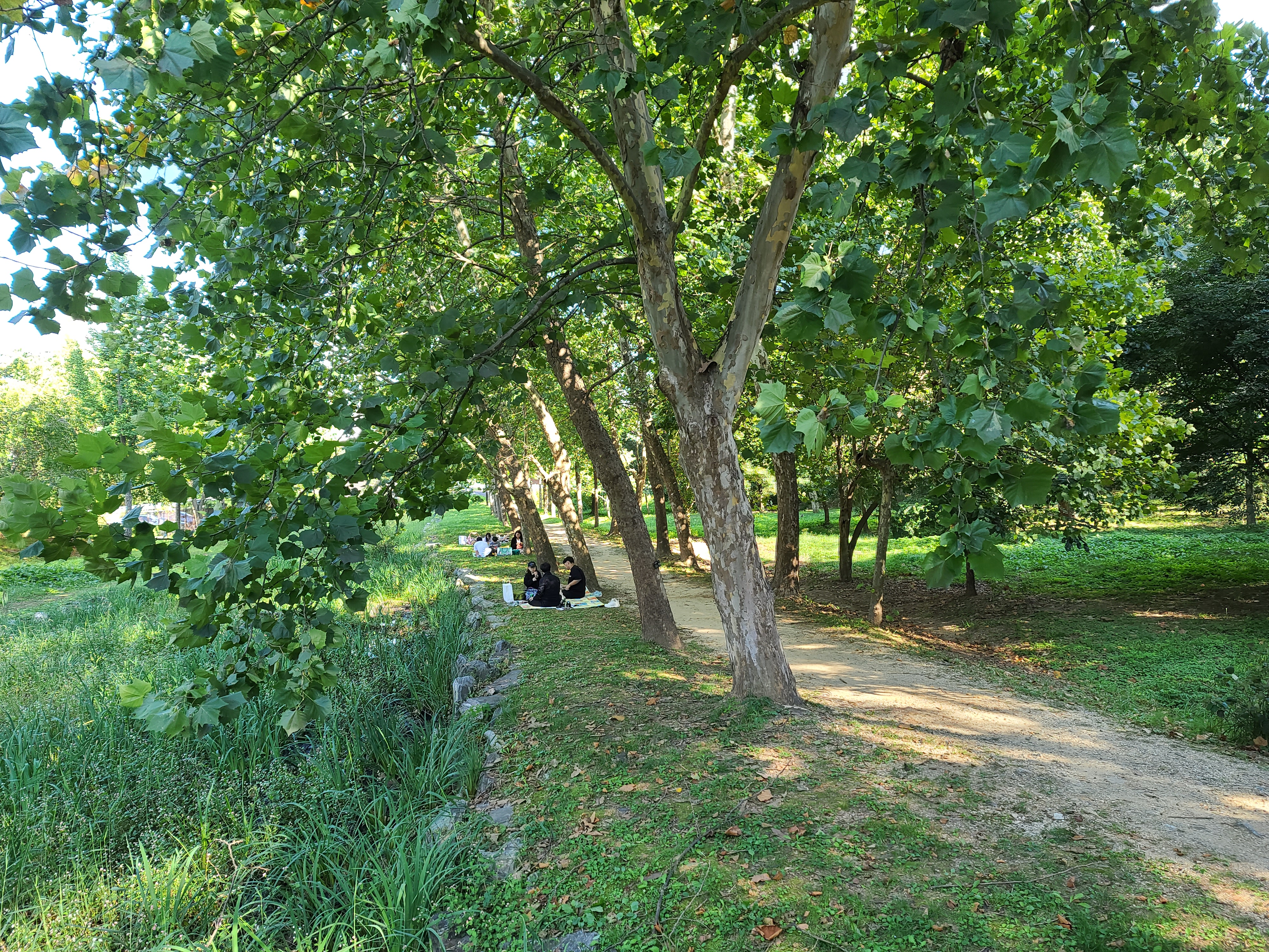 나무 밑에 돗자리를 깔고 휴식을 즐기는 시민들이 많이 보입니다.