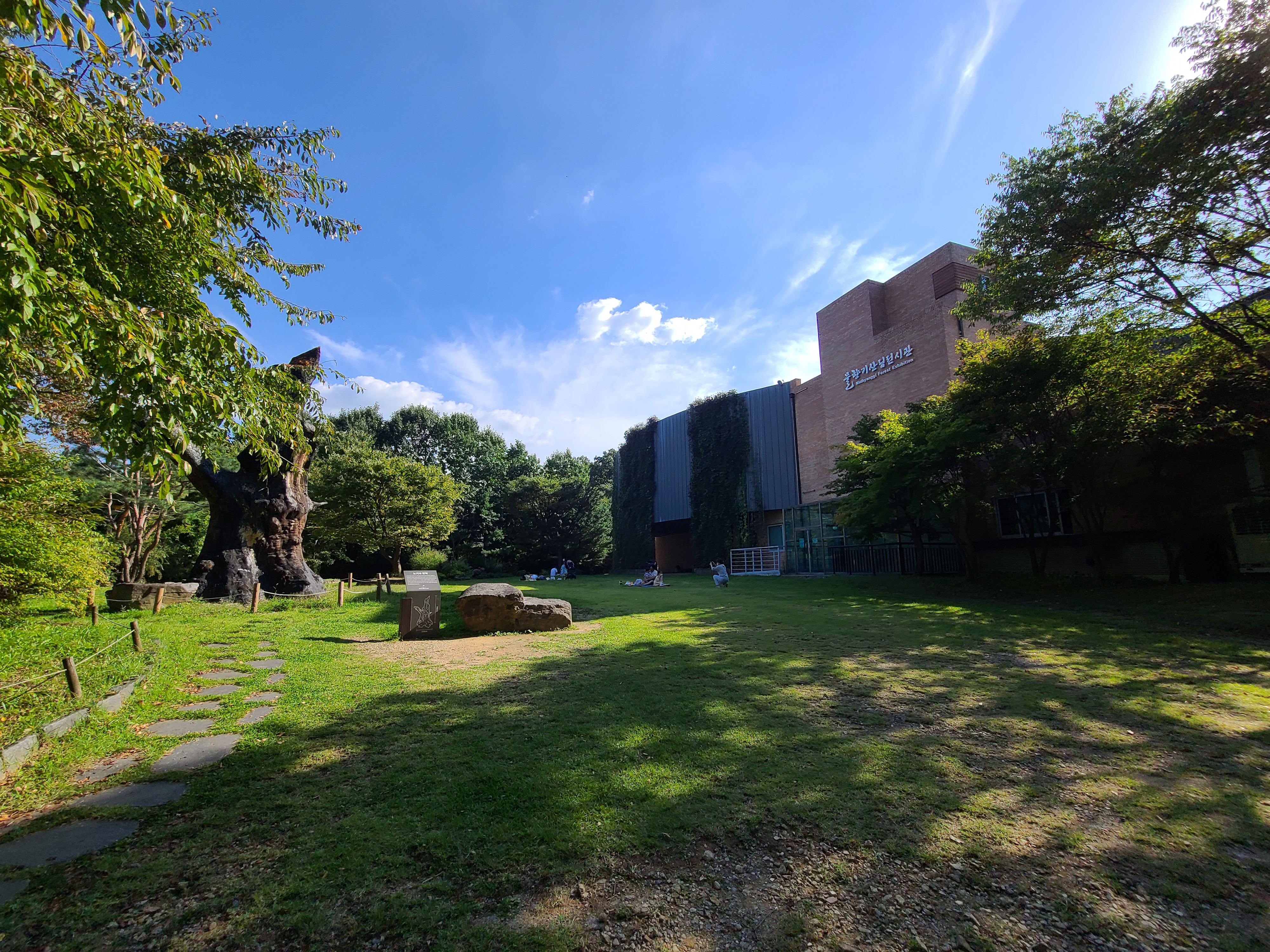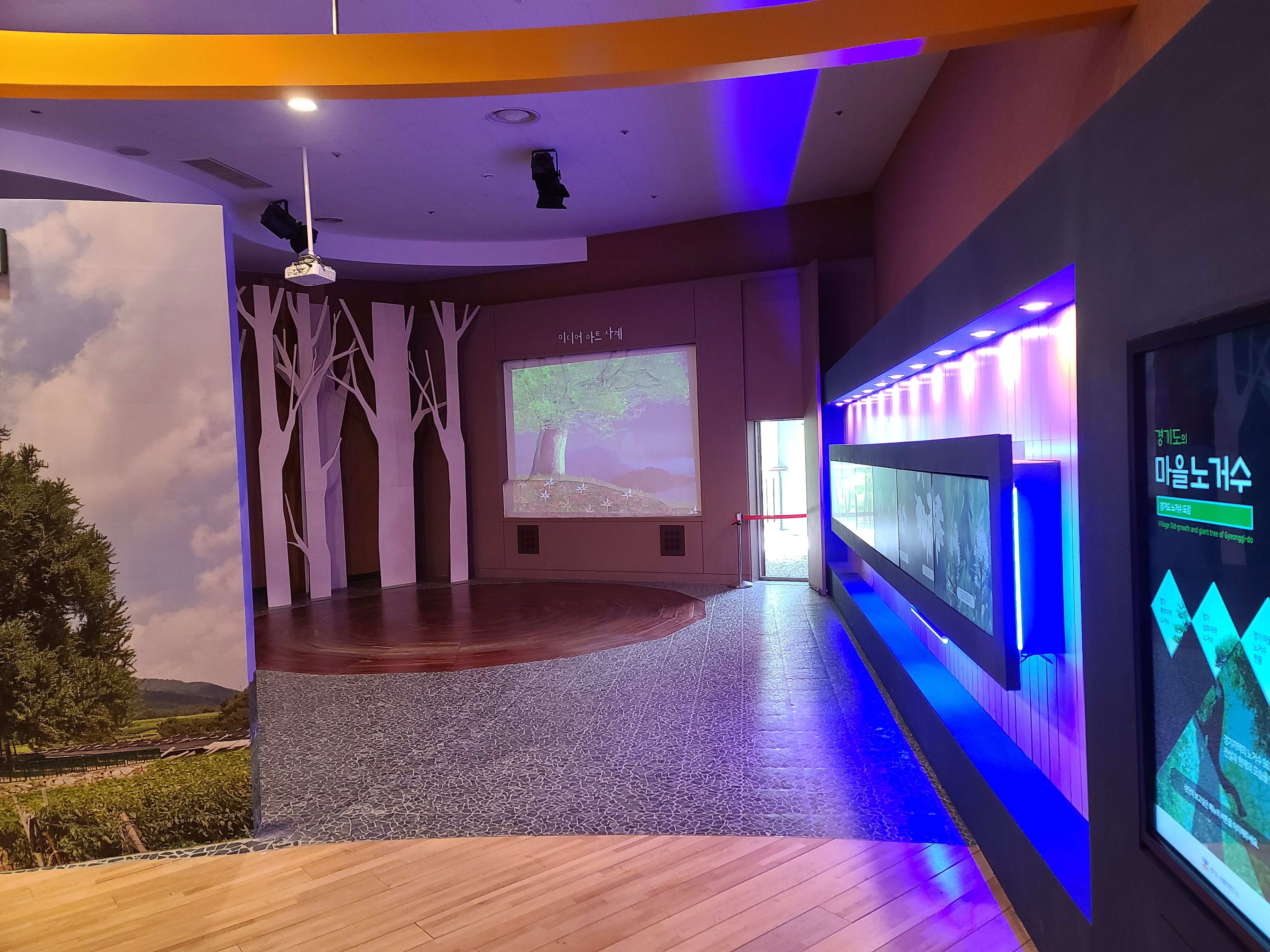 이 앞에는 노거수(나무 나이가 많은 큰 나무)가 전시되어 있습니다.