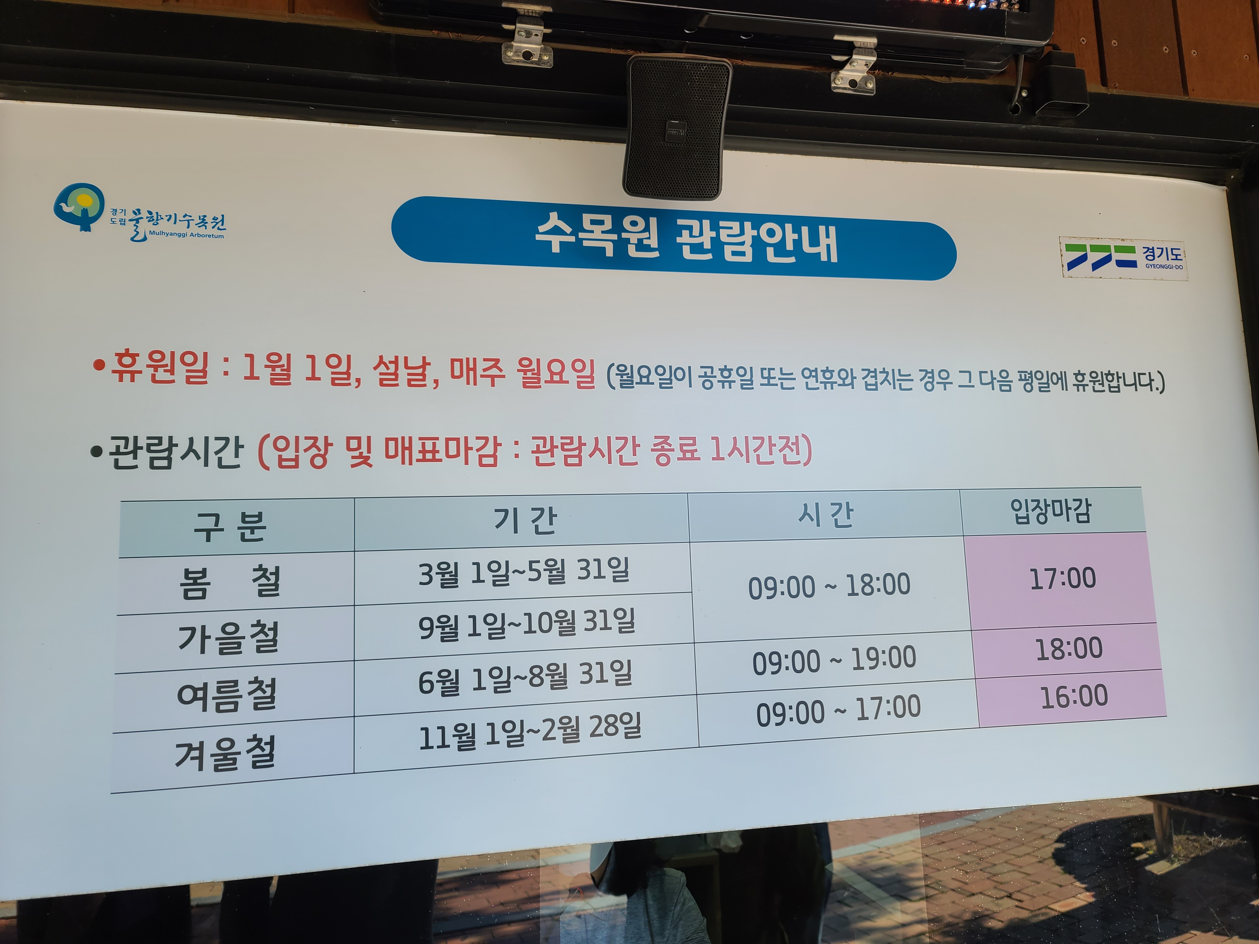 참고로 물향기 수목원은 1월 1일, 그리고 매주 월요일 휴원입니다.