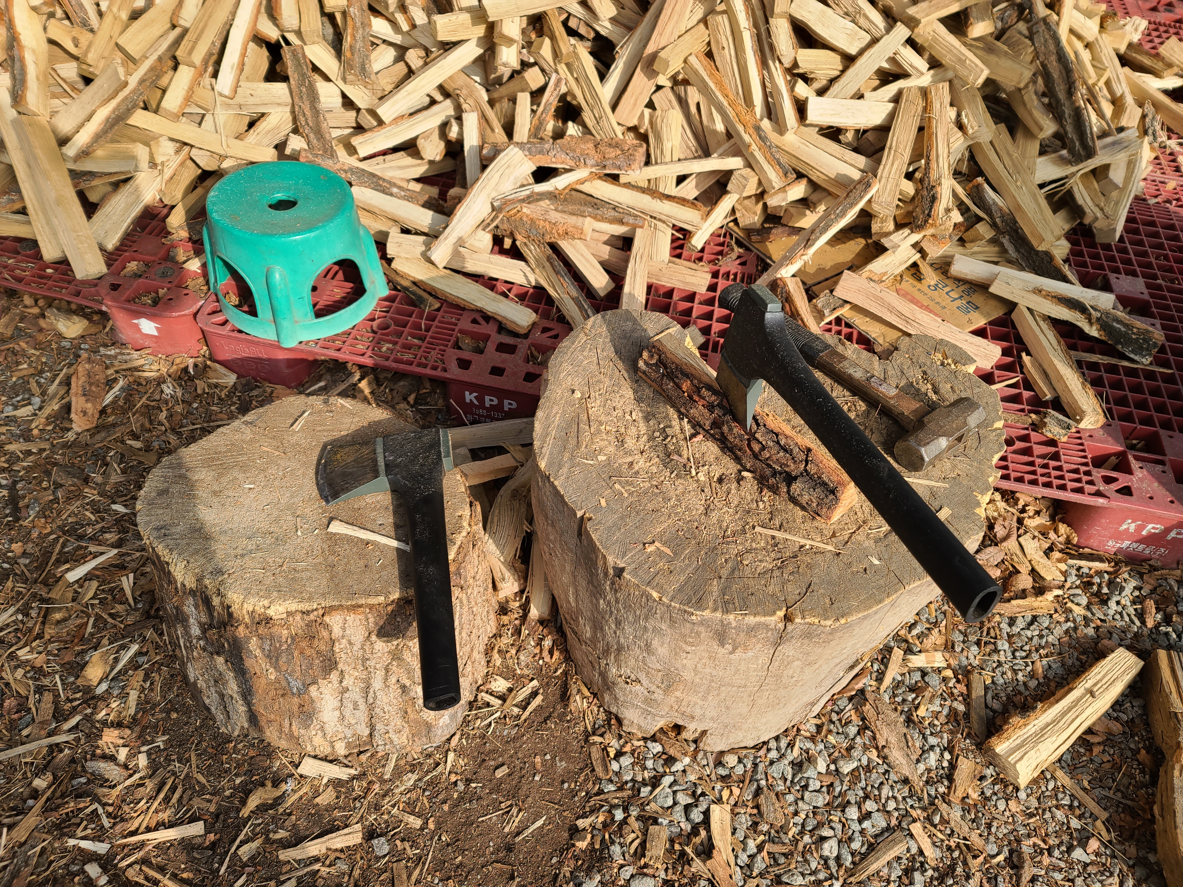 도끼가 있는 것을 보니 장작을 하나하나 패서 땔감으로 사용하는 것 같습니다.