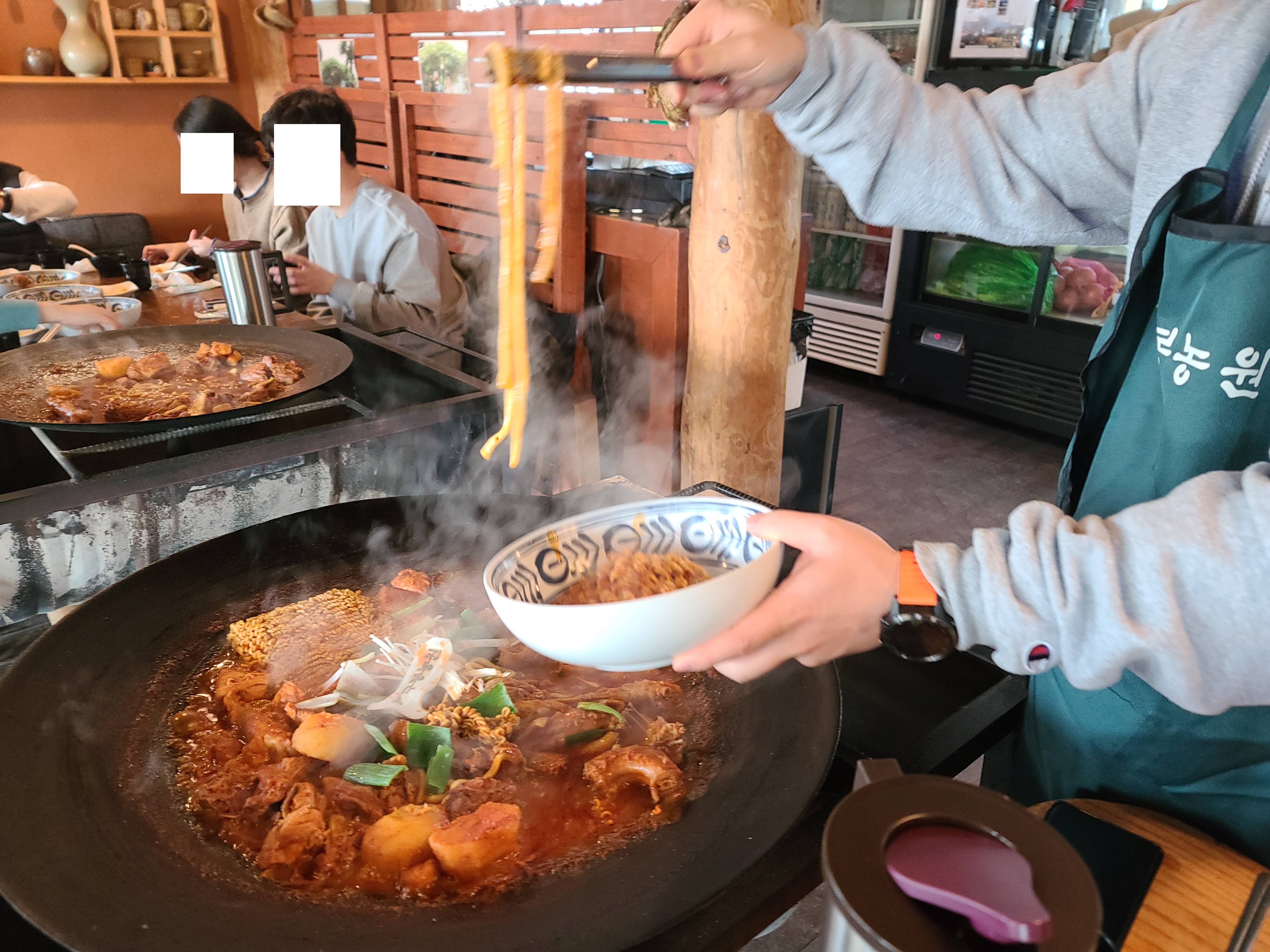 이제 춘천 구봉산 맛집 구봉농원의 하이라이트인 닭볶음탕을 덜어서 먹어보겠습니다.