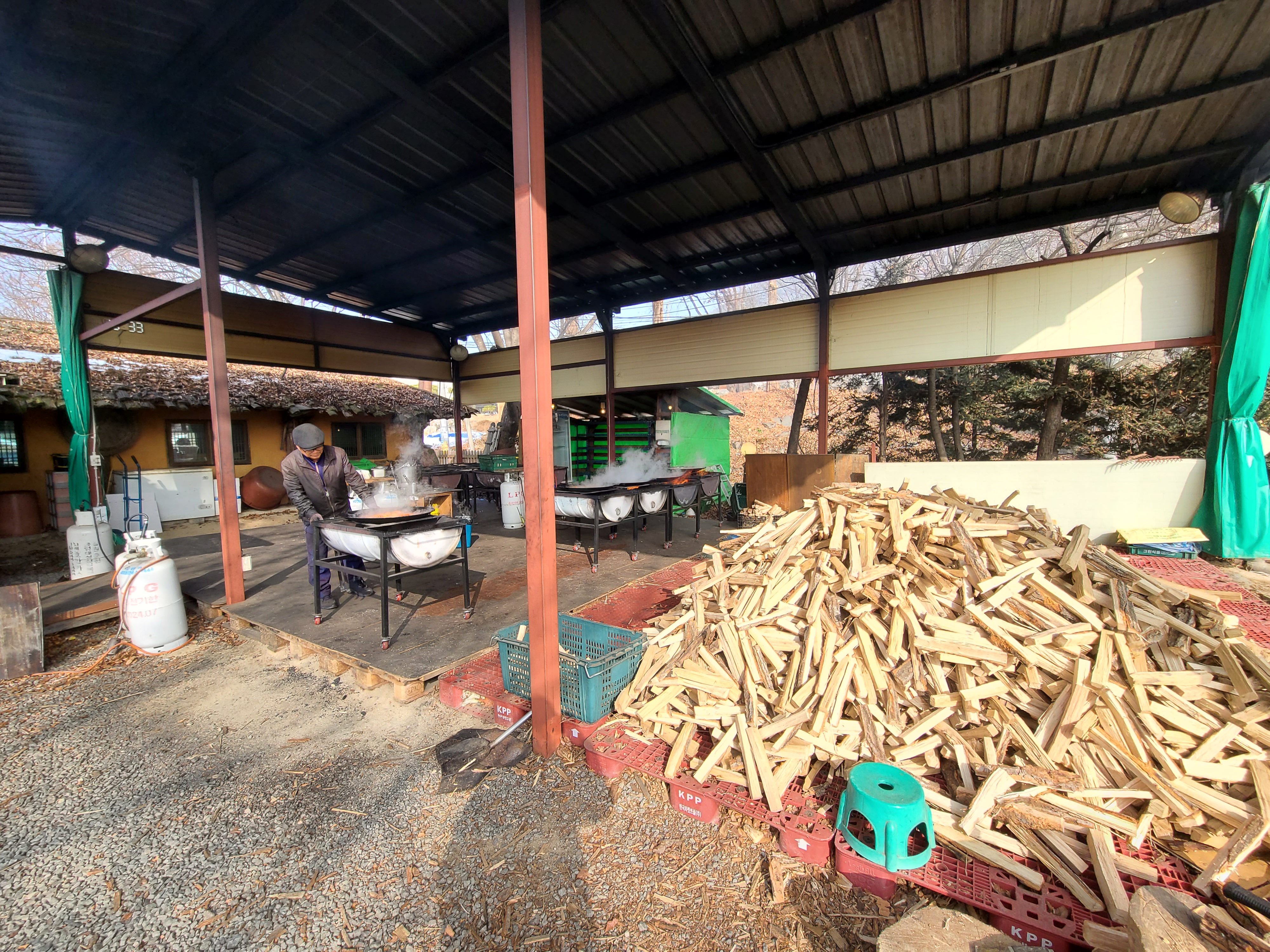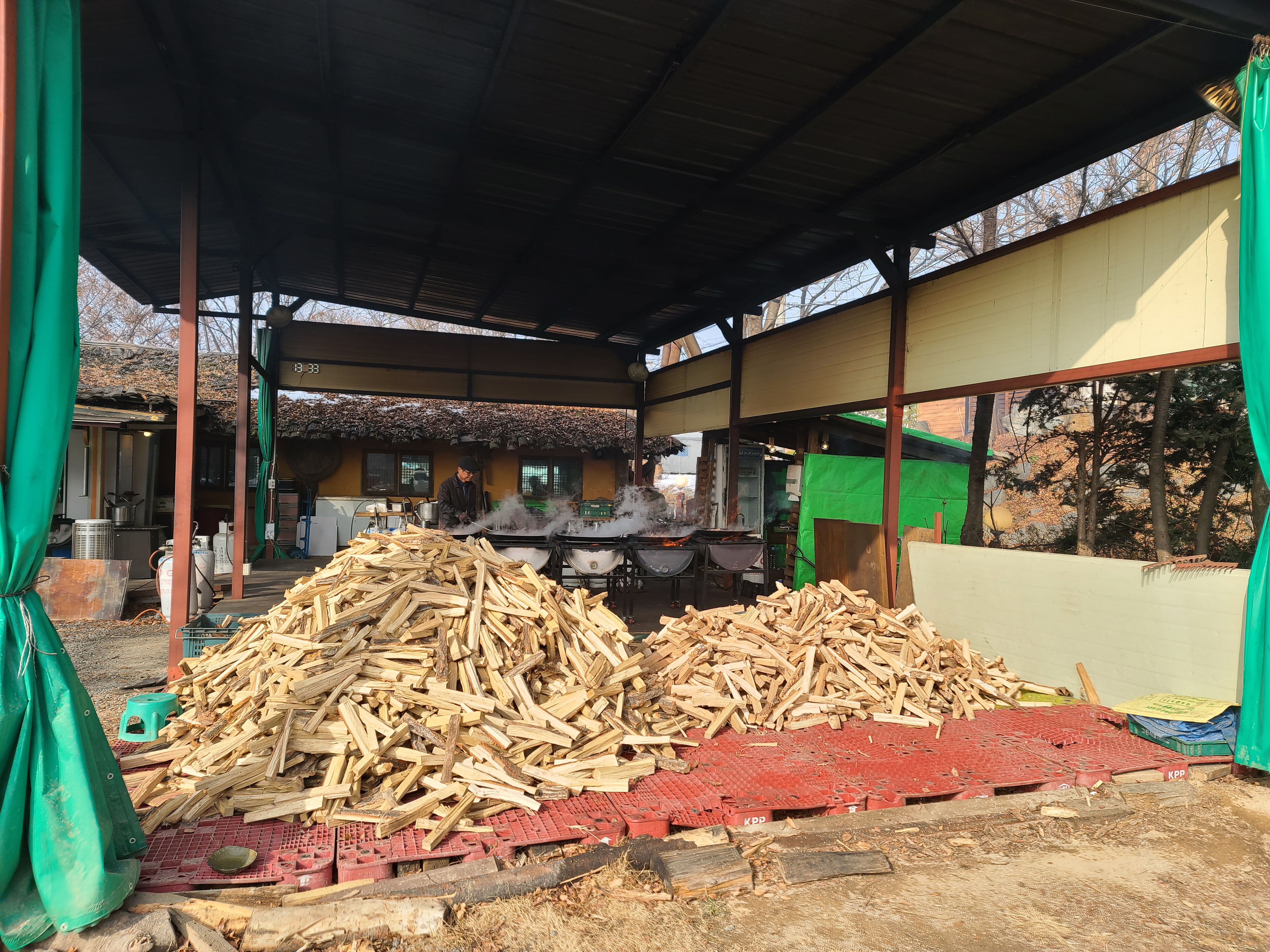 닭볶음탕을 끓이는데 사용되는 장작들이 잔뜩 쌓여있는 모습입니다.