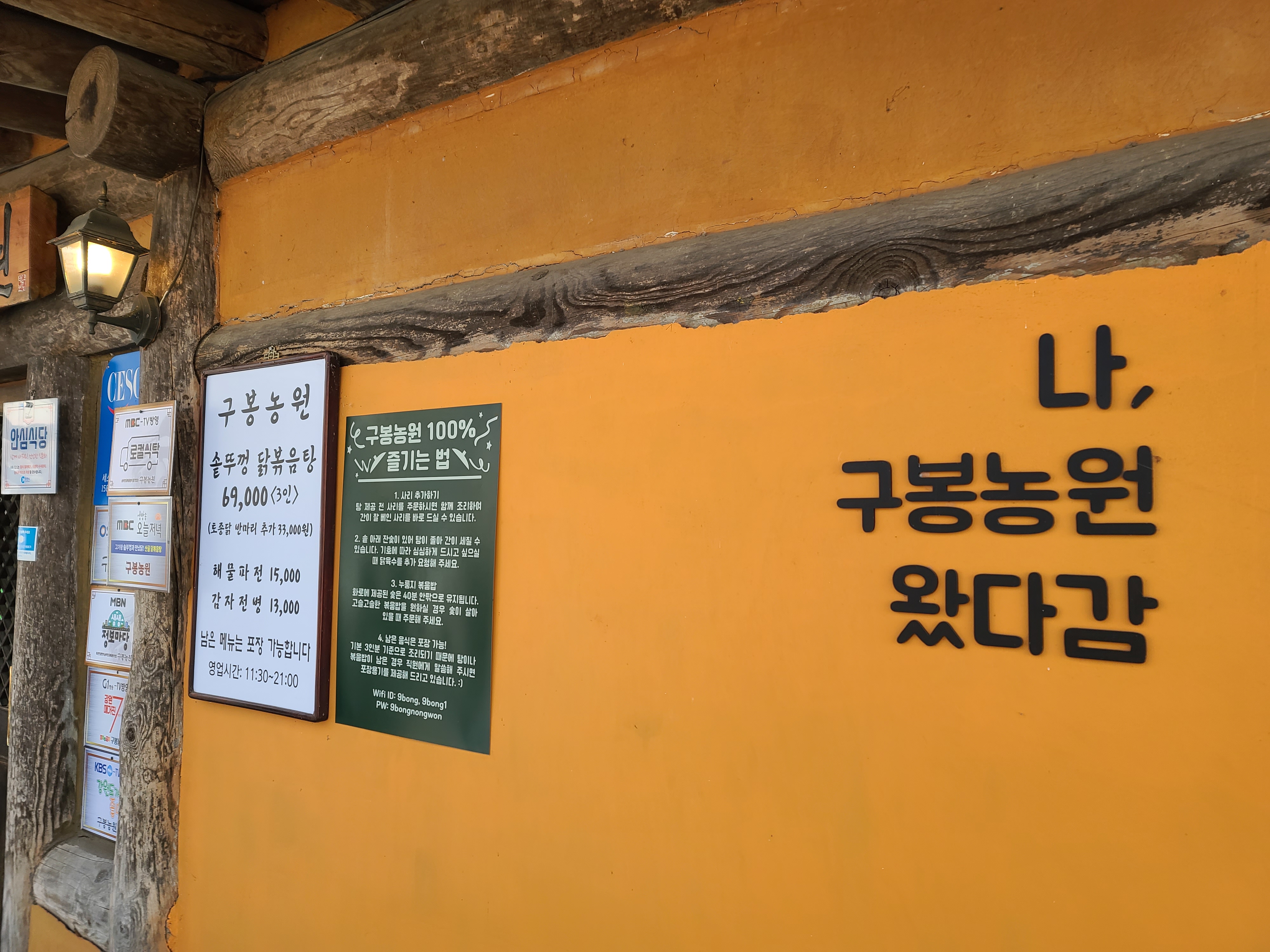 티비 저녁 정보 프로그램에서나 볼 수 있는, 지방 외곽지역에 숨어 있을 법한 시골느낌이 제대로 나는 맛집을 춘천 구봉산이라는 유명 관광지에서 가볼 수 있다는게 정말 큰 메리트가 아닌가 싶습니다.