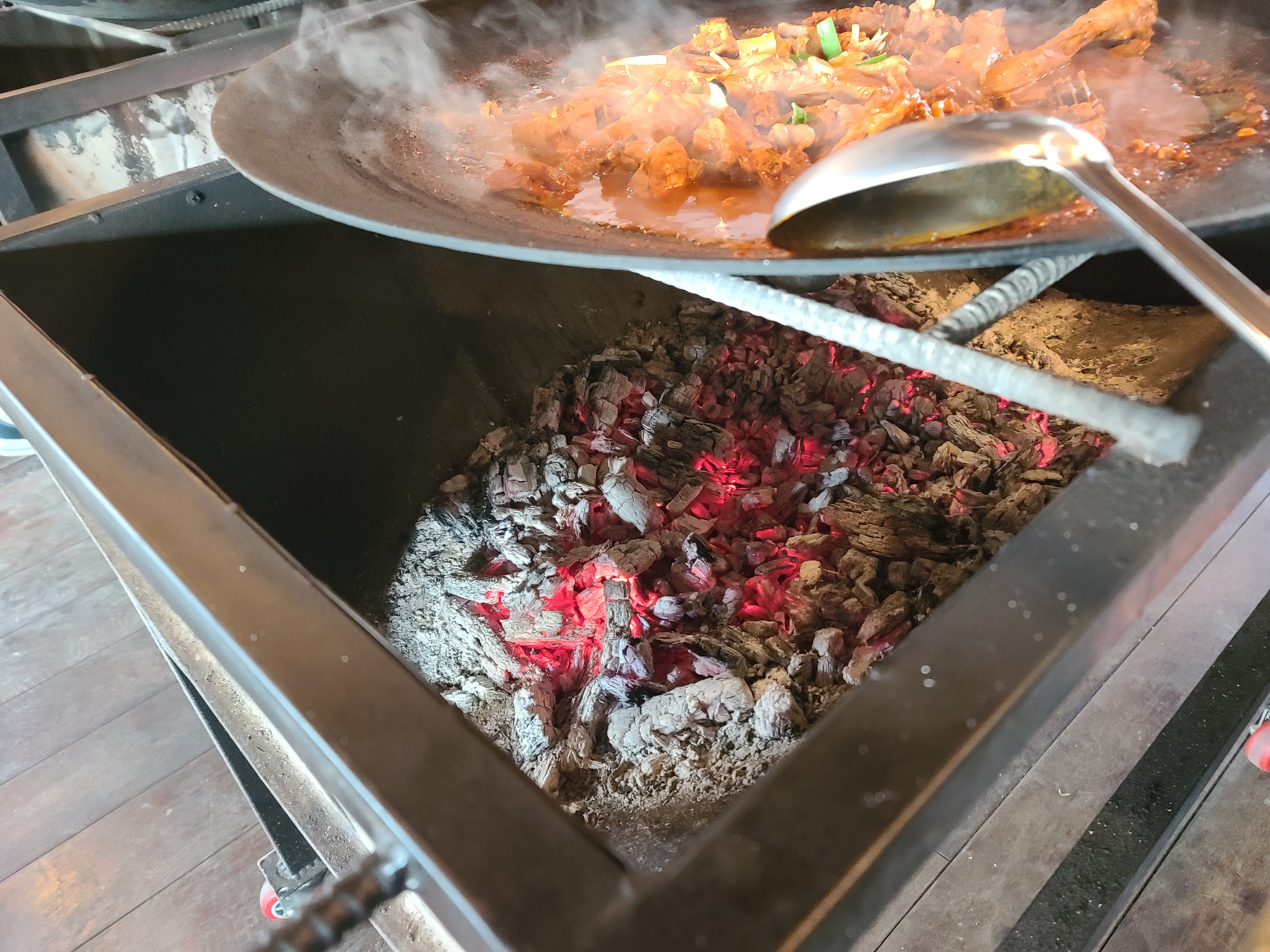 이런식으로 솥뚜껑 밑에는 숯이 놓여있어서 먹는 내내 따듯한 닭볶음탕을 먹을 수 있습니다.