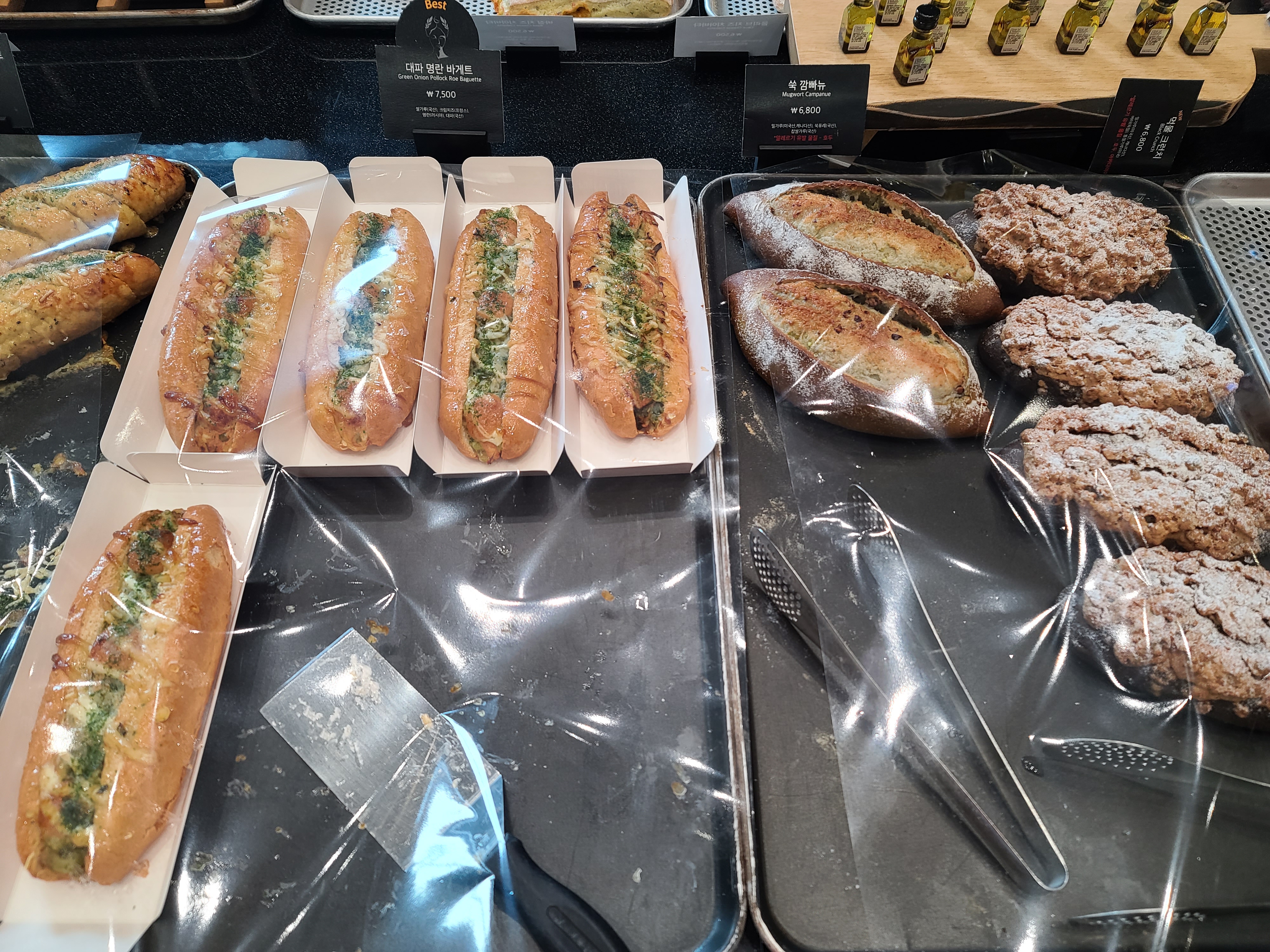 이 바게트류가 BEST 메뉴들이라고 해서 저는 위 사진에 보이는 대파 명란 바게트를 주문해서 먹었습니다.