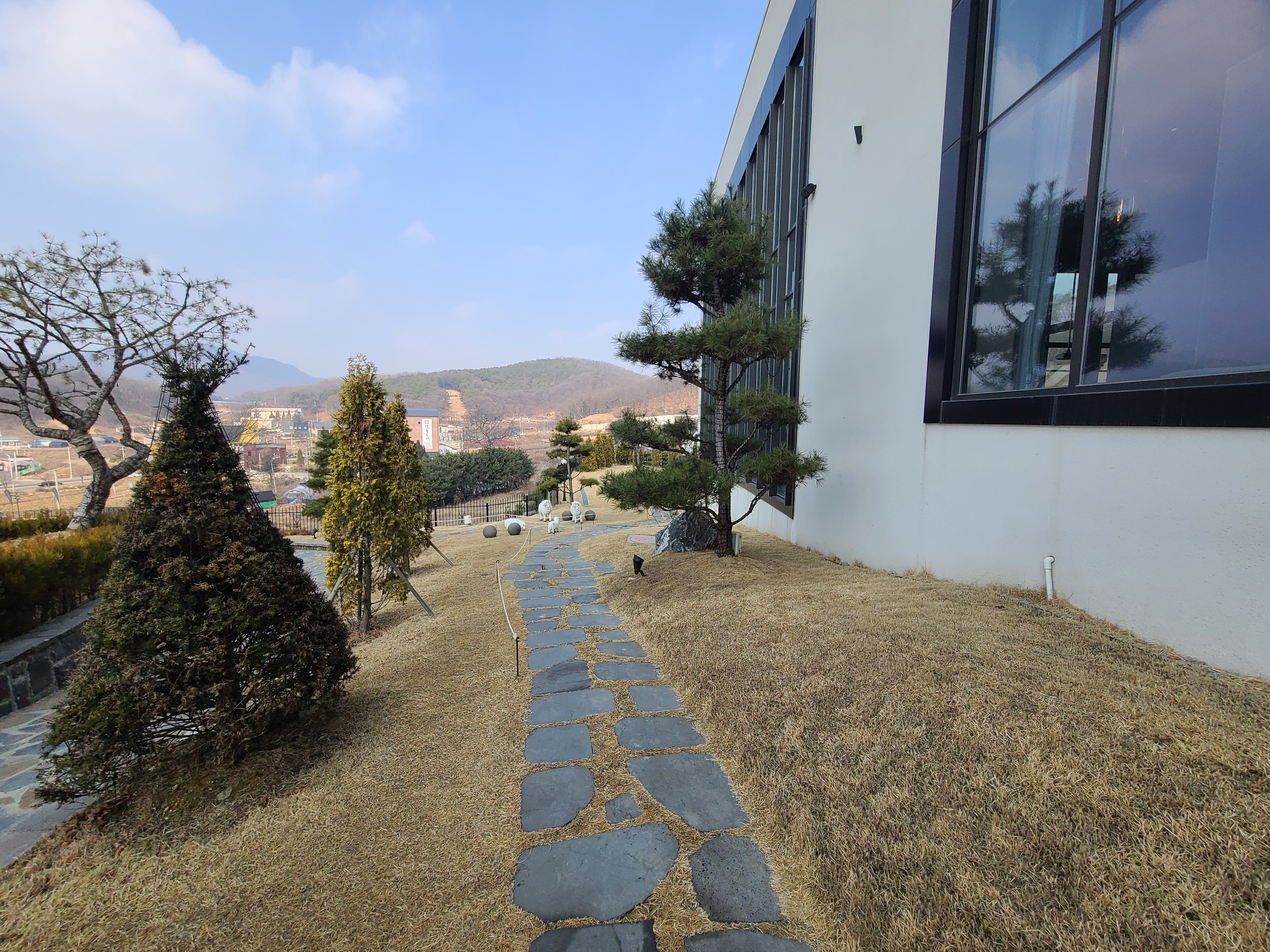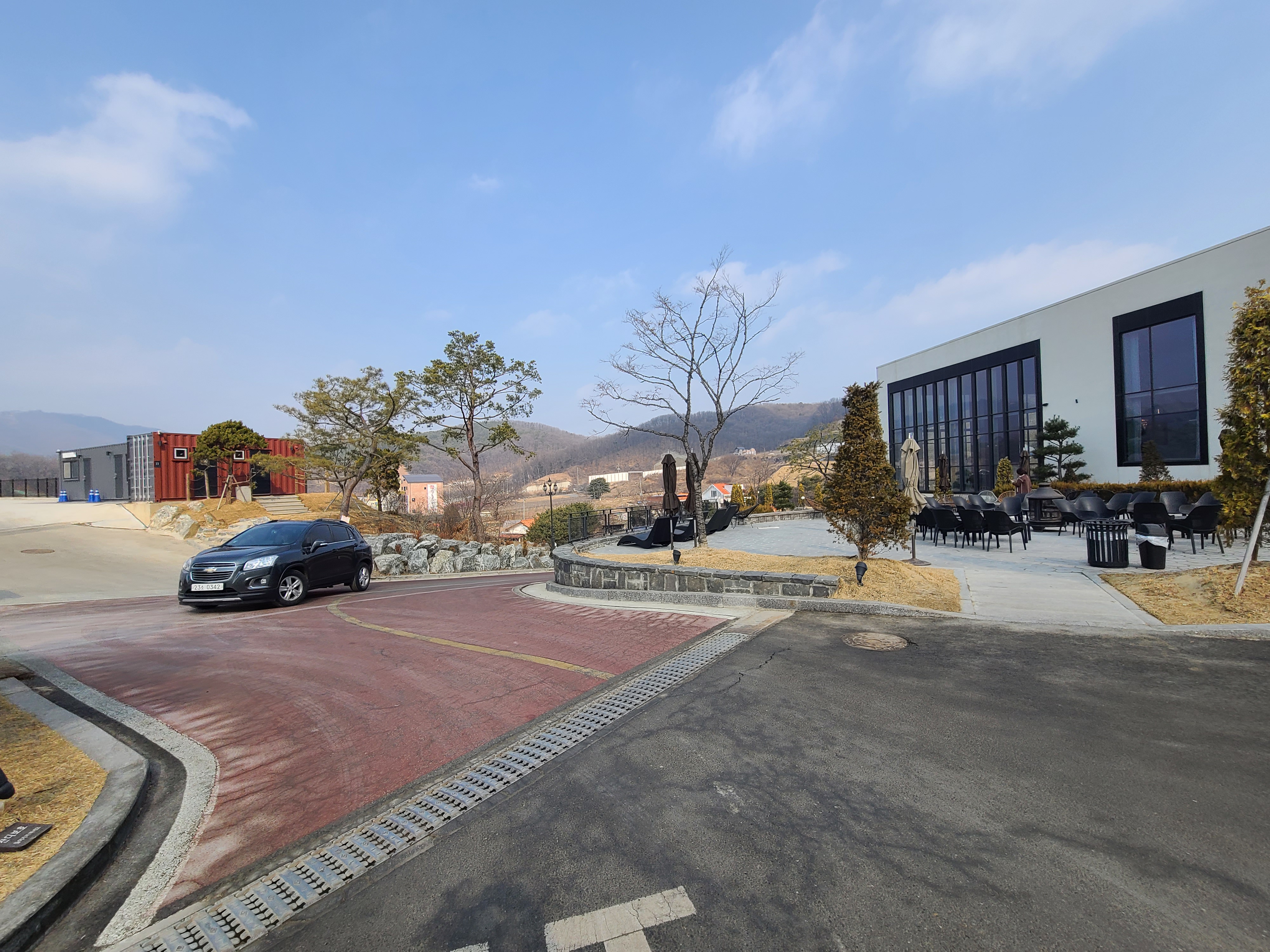 여기서 앞으로 쭉 가면 처음에 보여드렸던 통유리로 된 카페 외관 모습이 나옵니다.