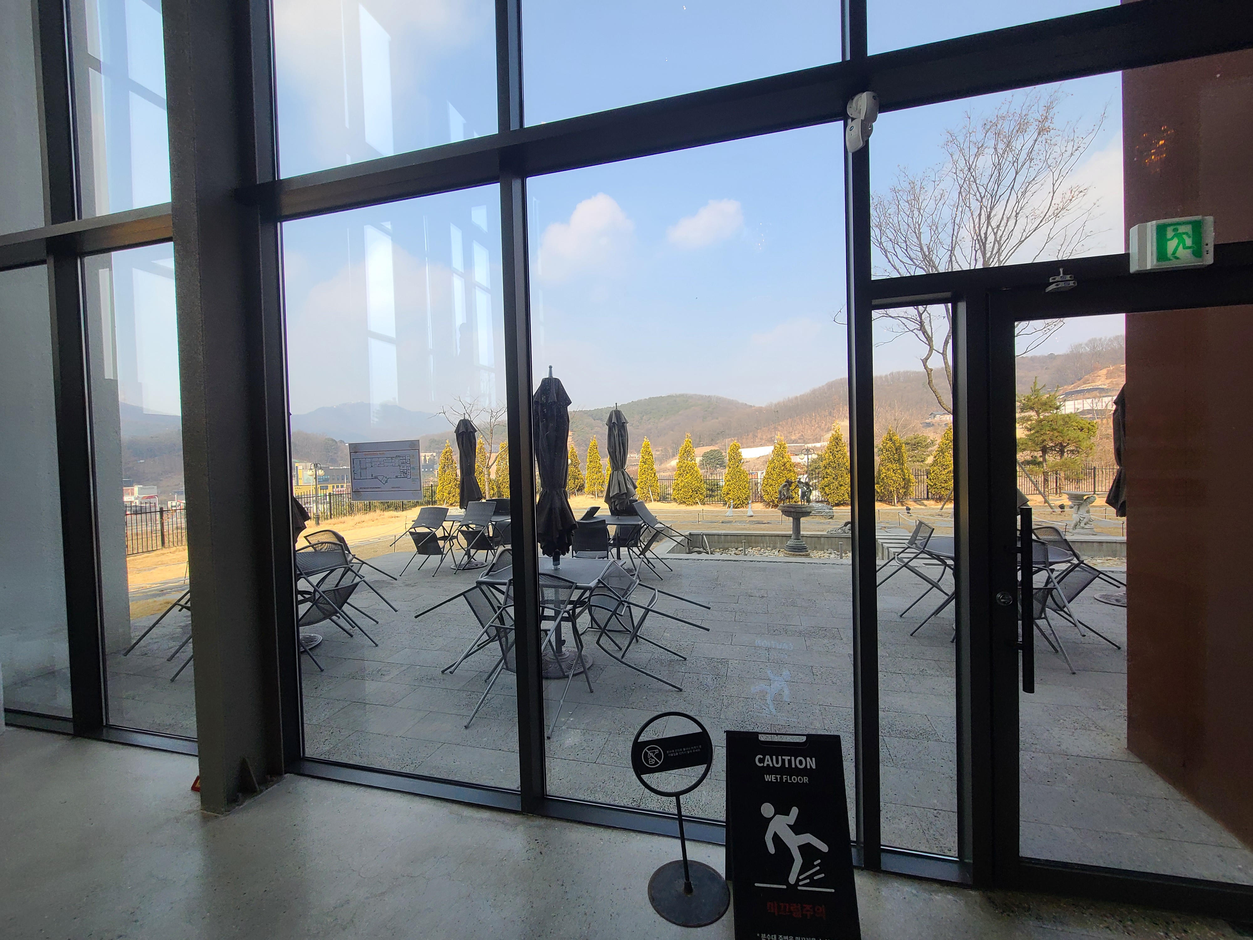 통유리로 되어있어서 카페 내부에서 바깥풍경을 감상할 수 있습니다.