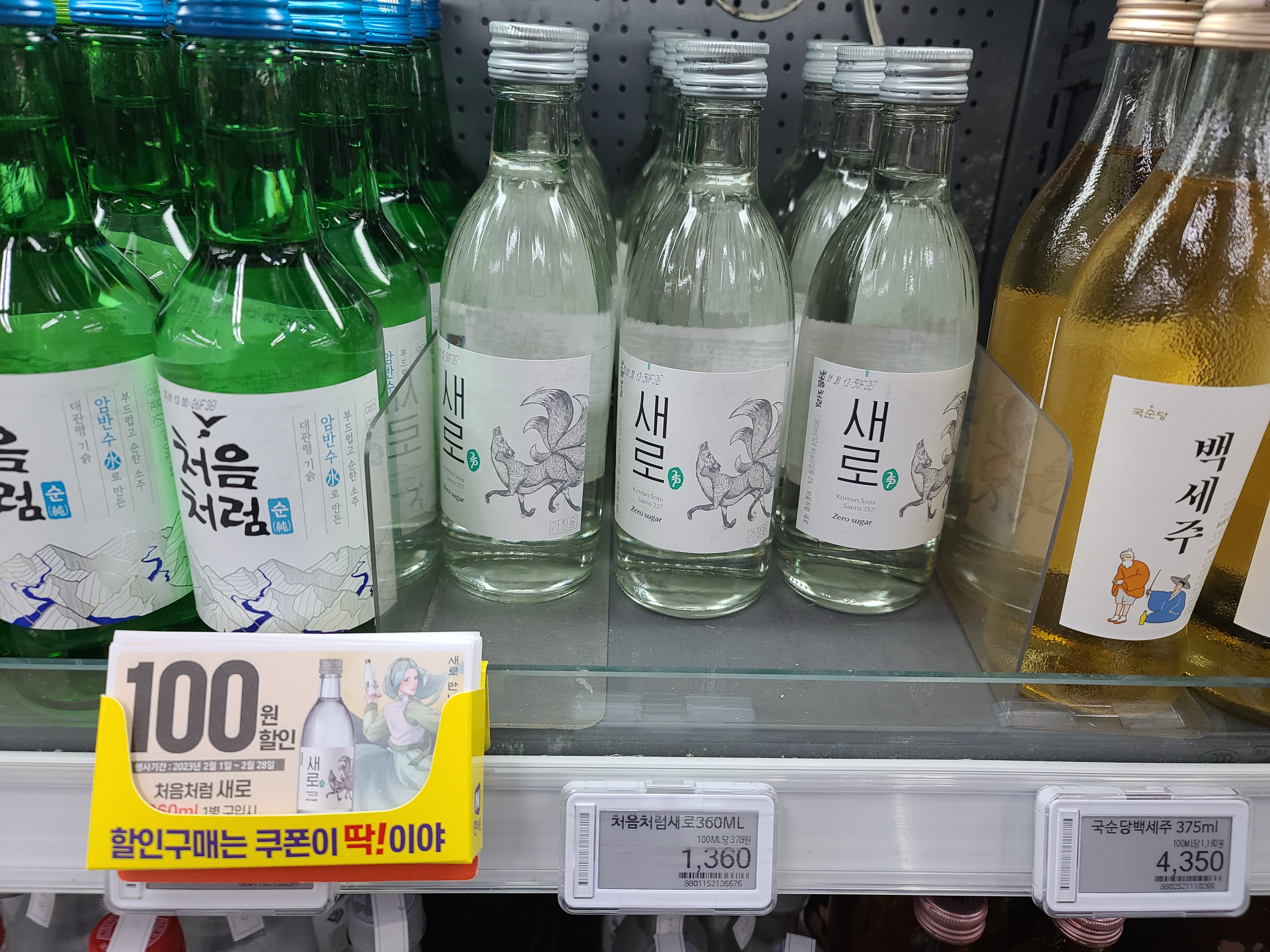 마지막으로 제로슈거 처음처럼 새로도 진로와 같이 360ml에 1,360원입니다.