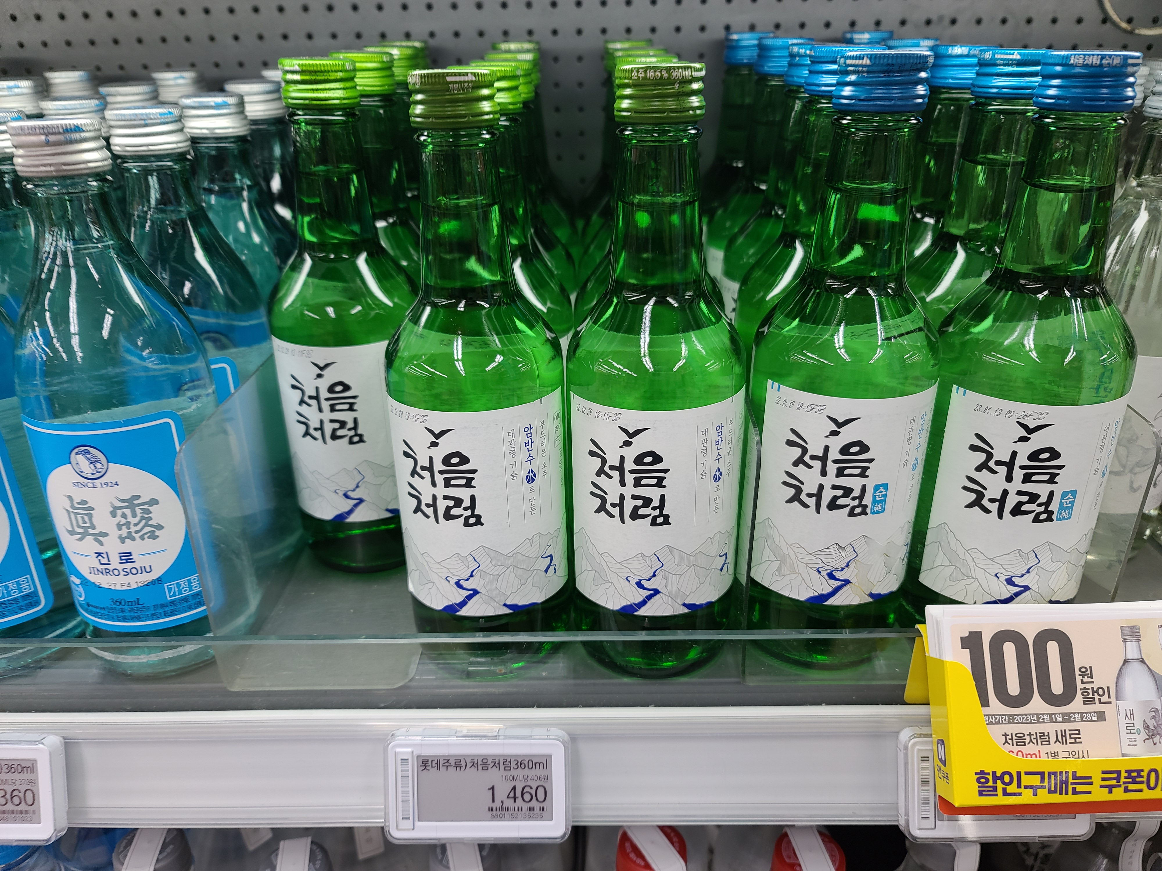 처음처럼 소주는 360ml에 1,460원이군요.
