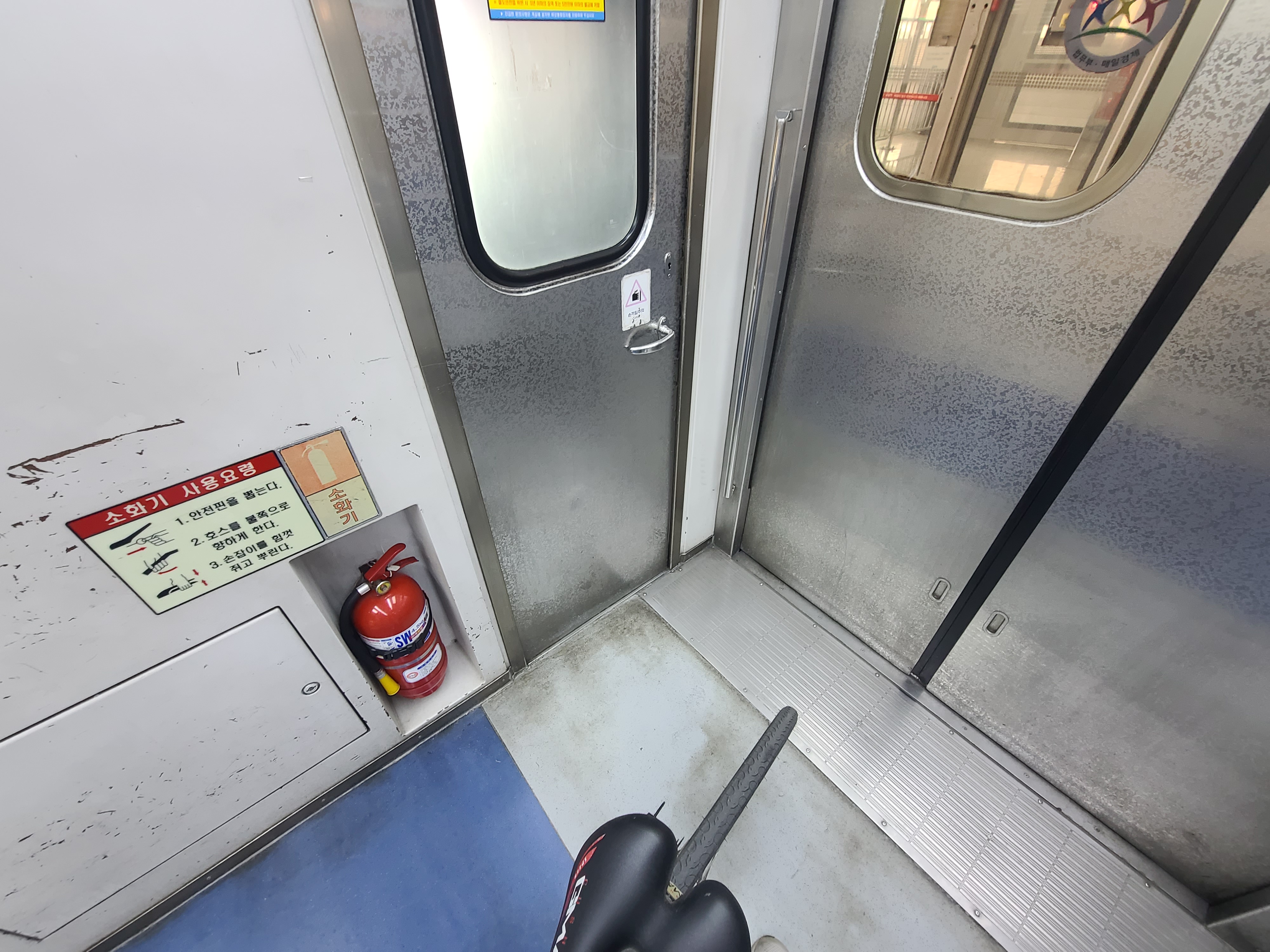 지하철 맨 앞칸과 뒷칸에는 위와 같이 지하철 운전석으로 들어가는 문이 있습니다.