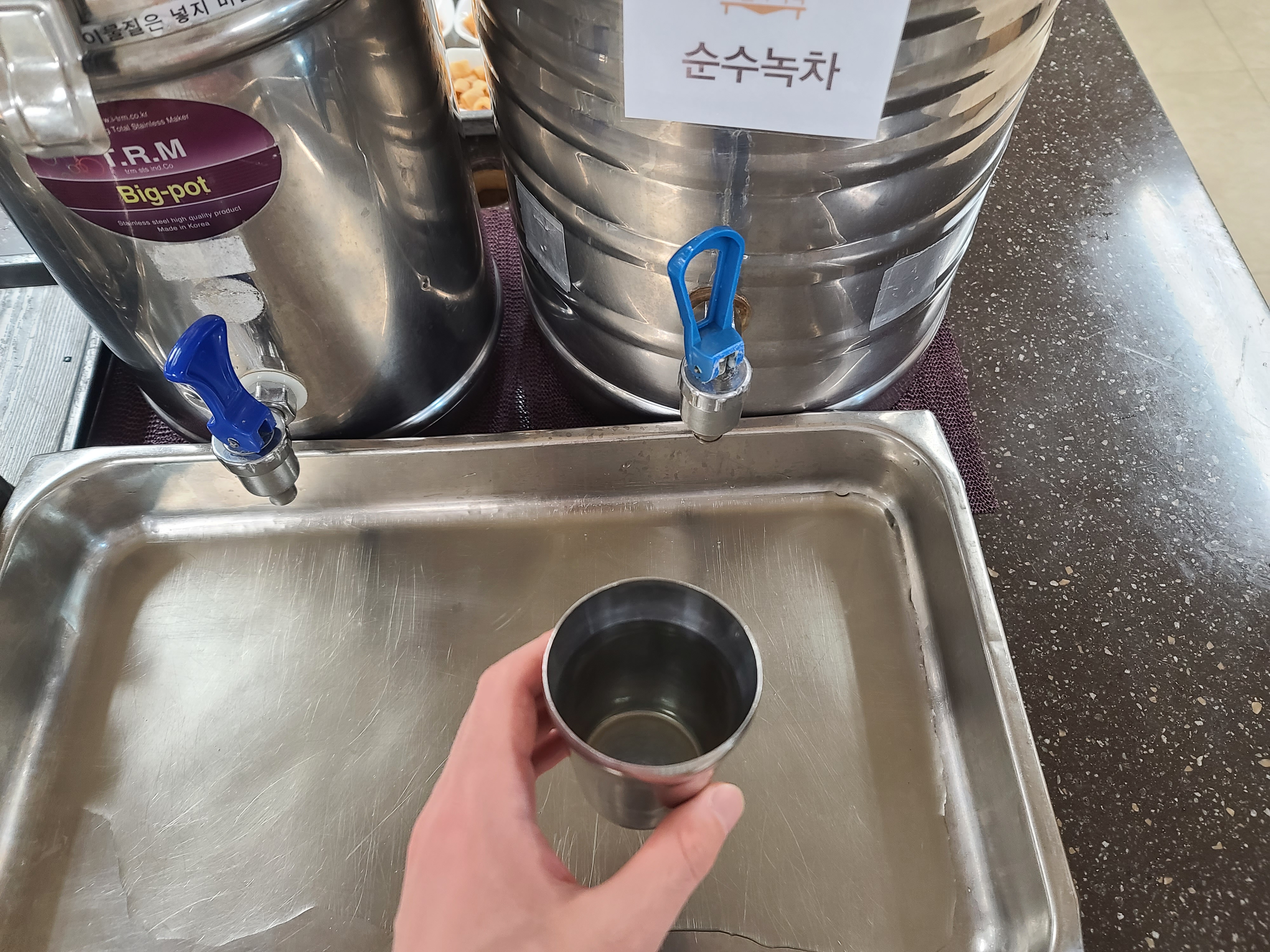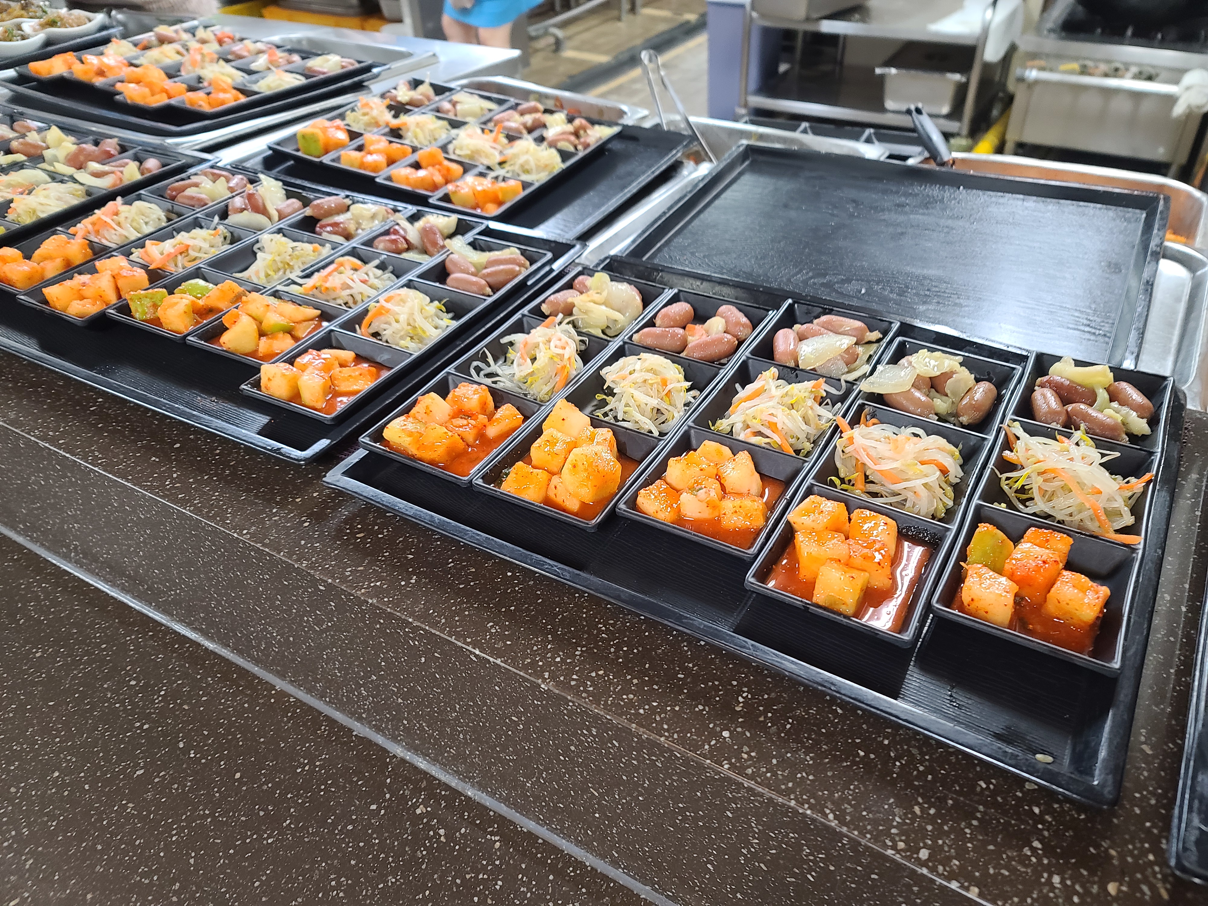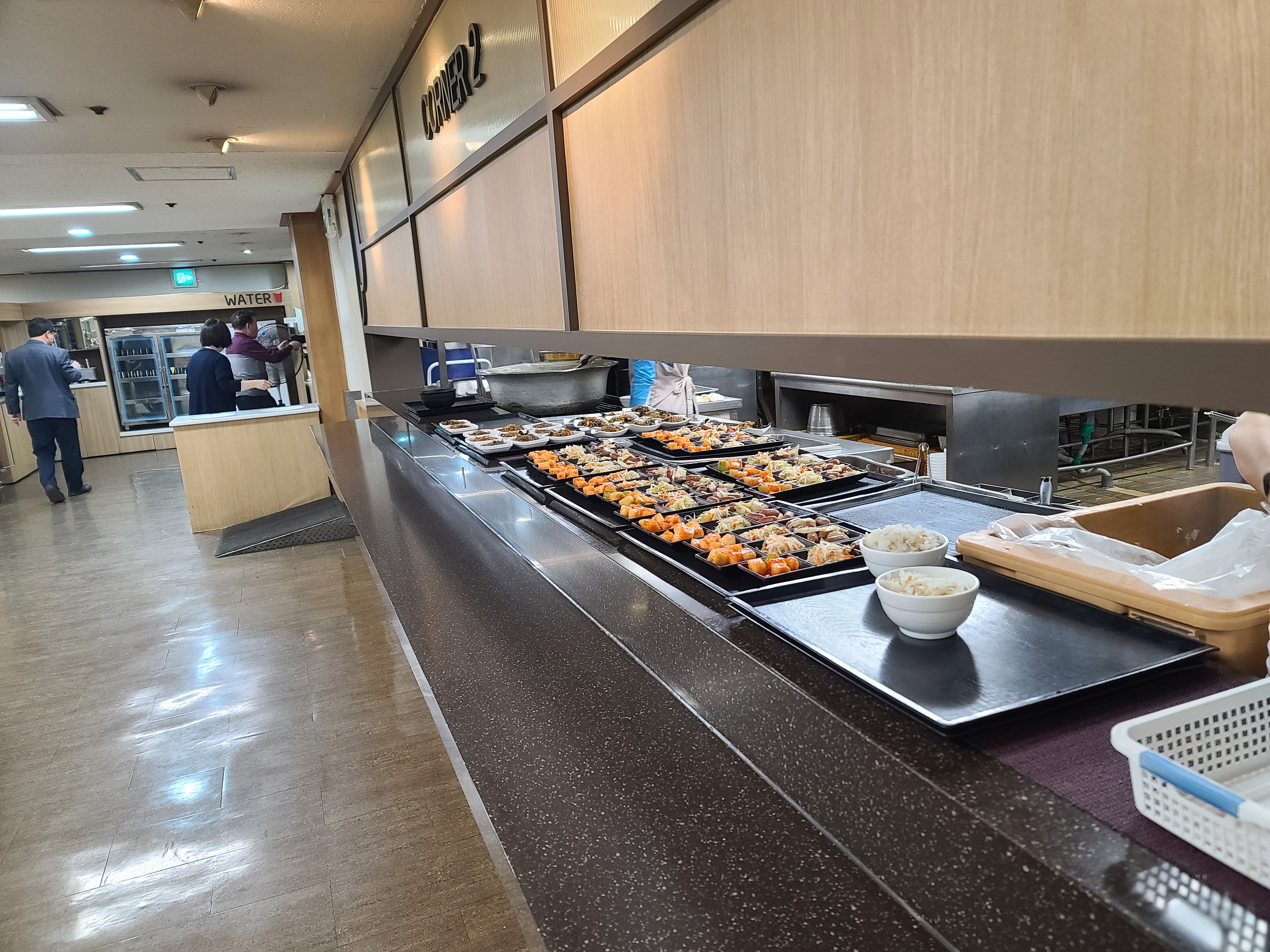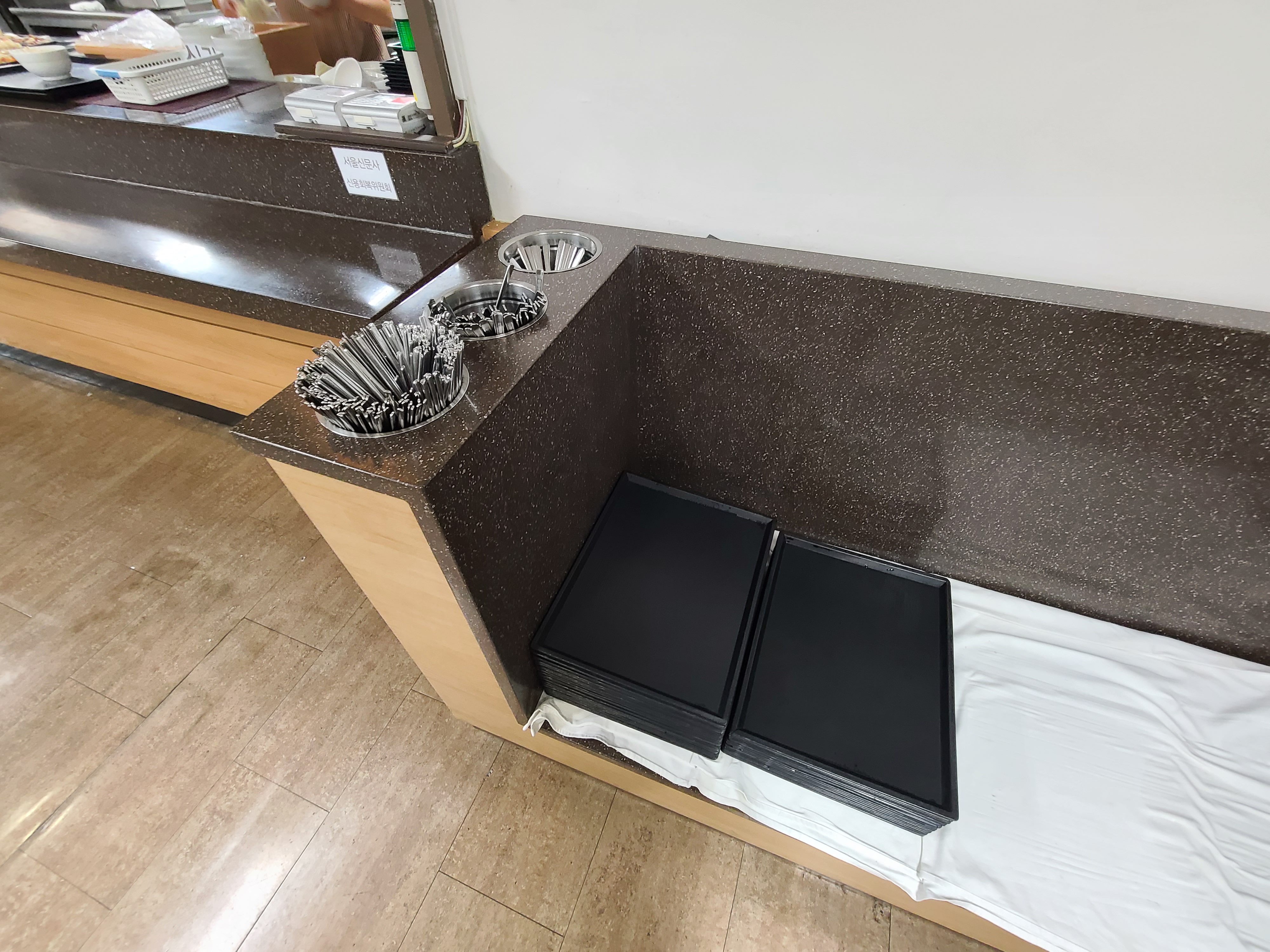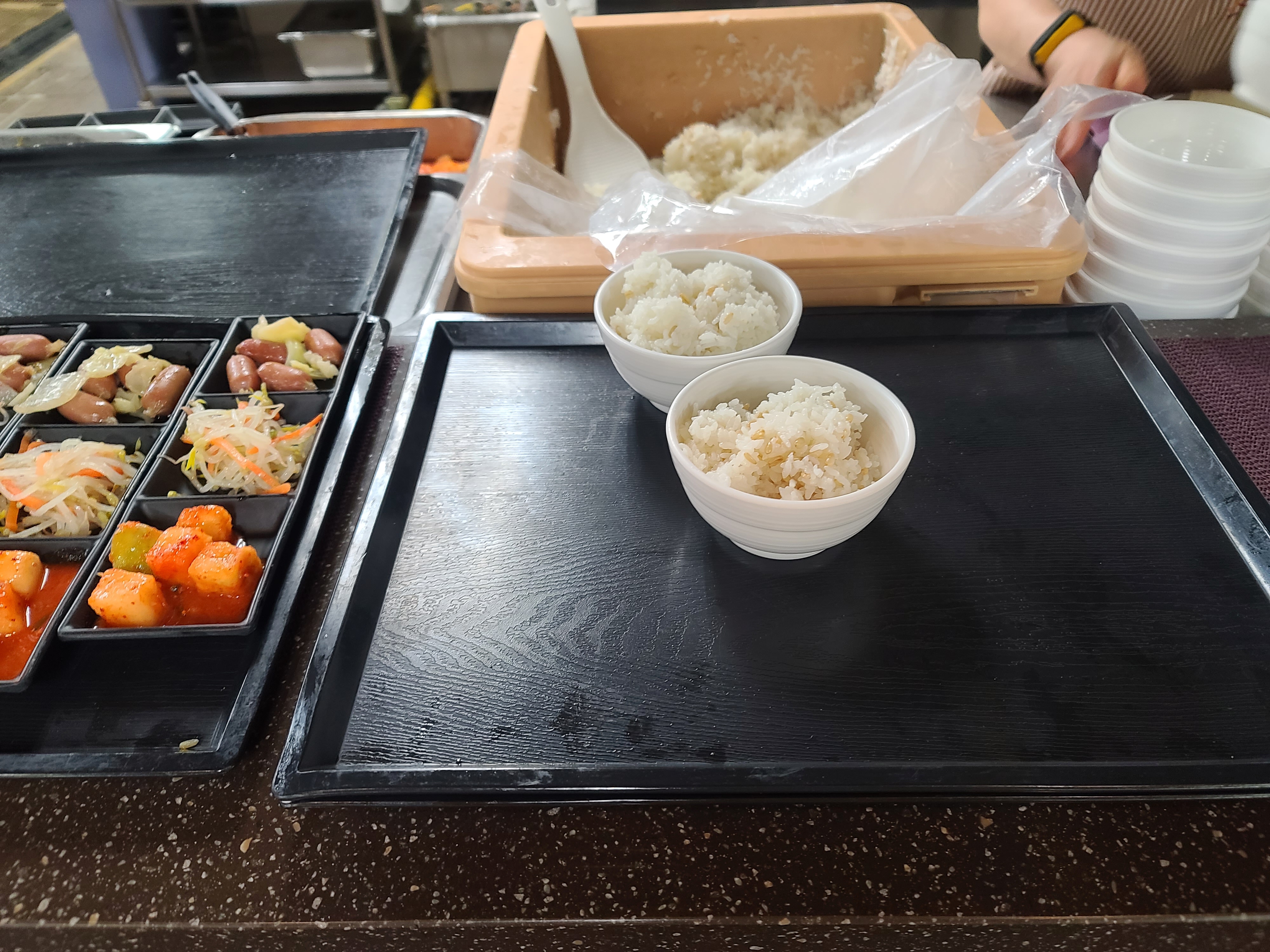 이 구내식당은 미리 세팅되어있는 반찬을 쟁반에 담아가는 구조입니다.
