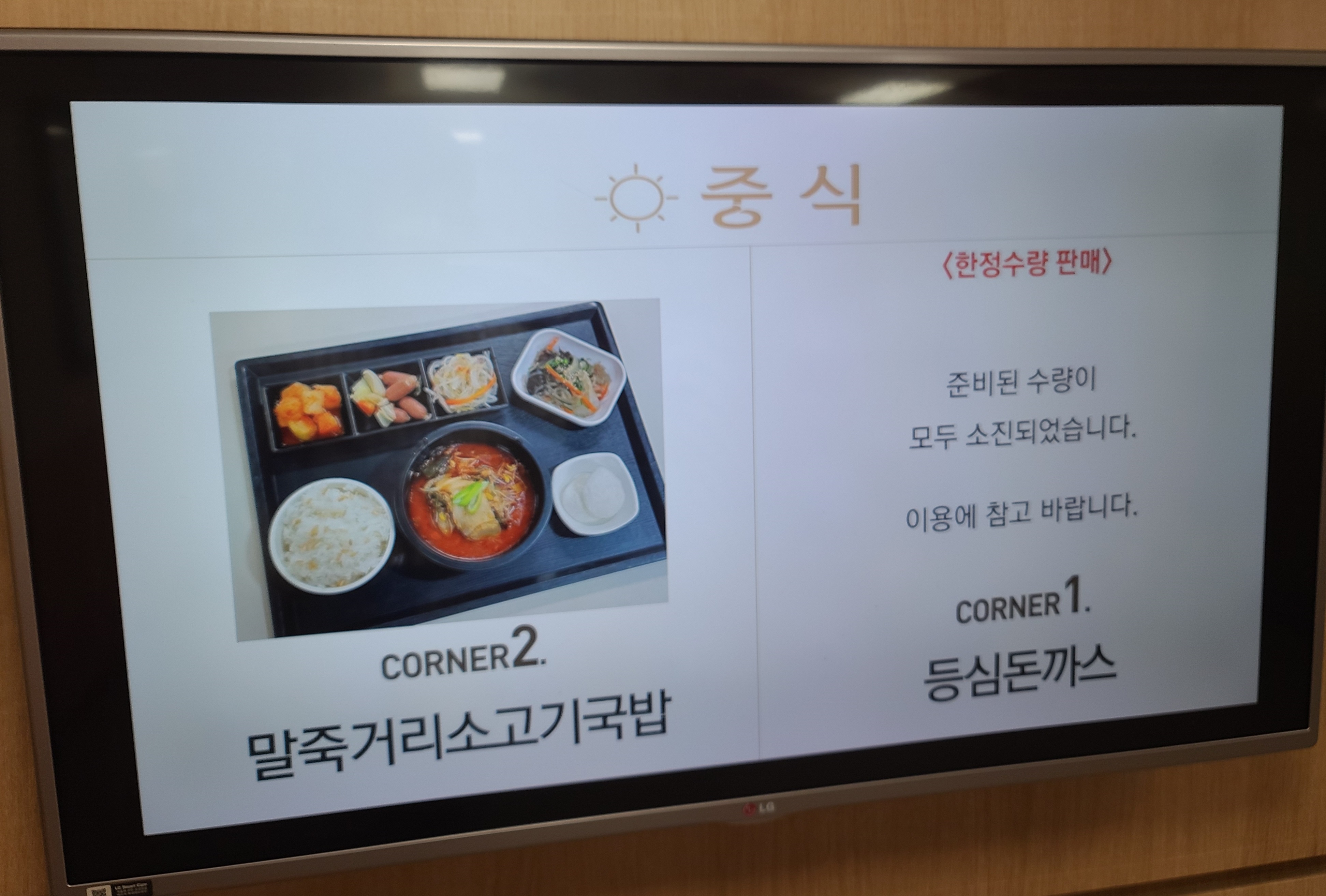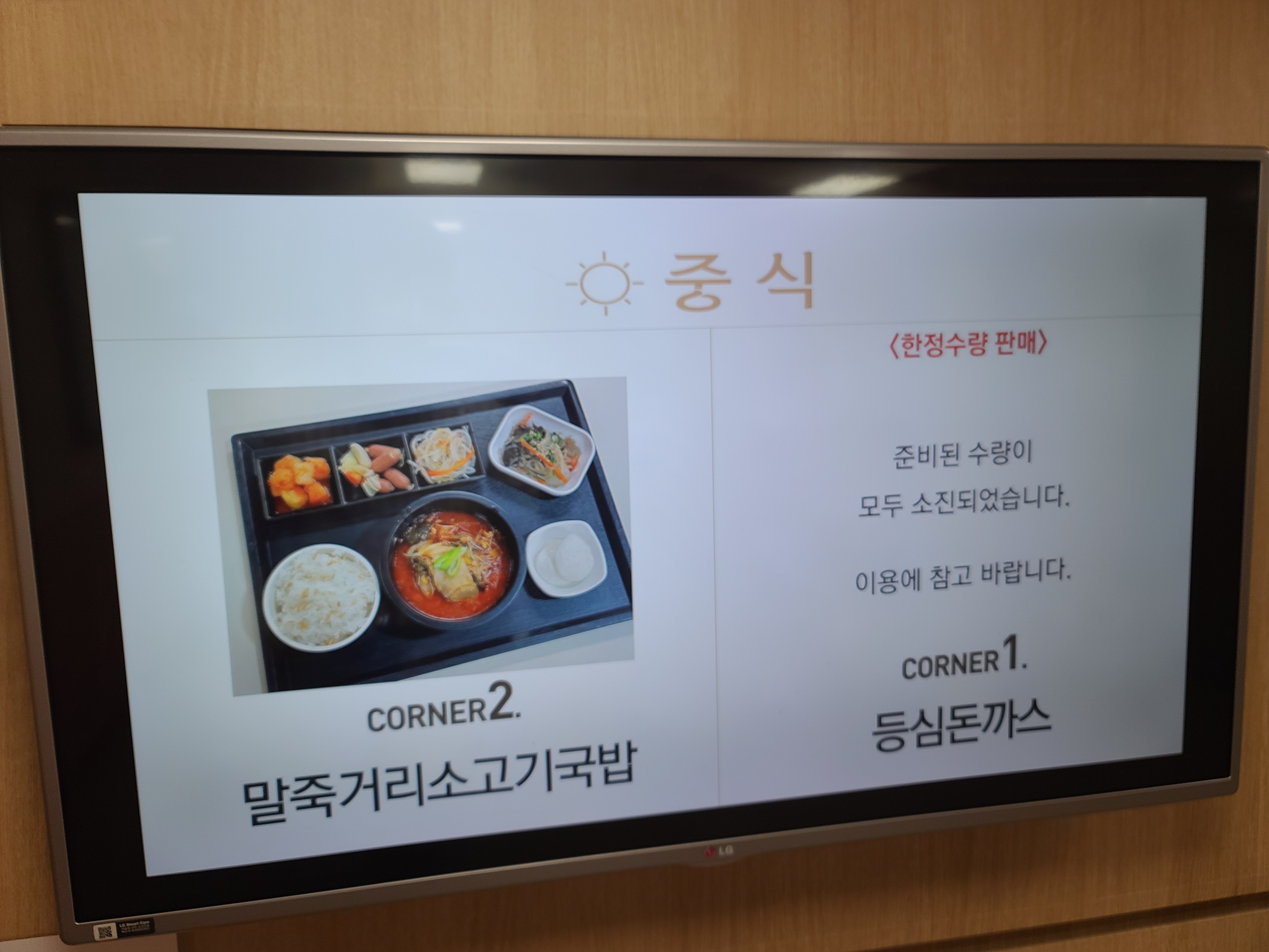 근데 아쉽게도 제가 제일 좋아하는 점심 메뉴인 돈까스가 품절이더군요..