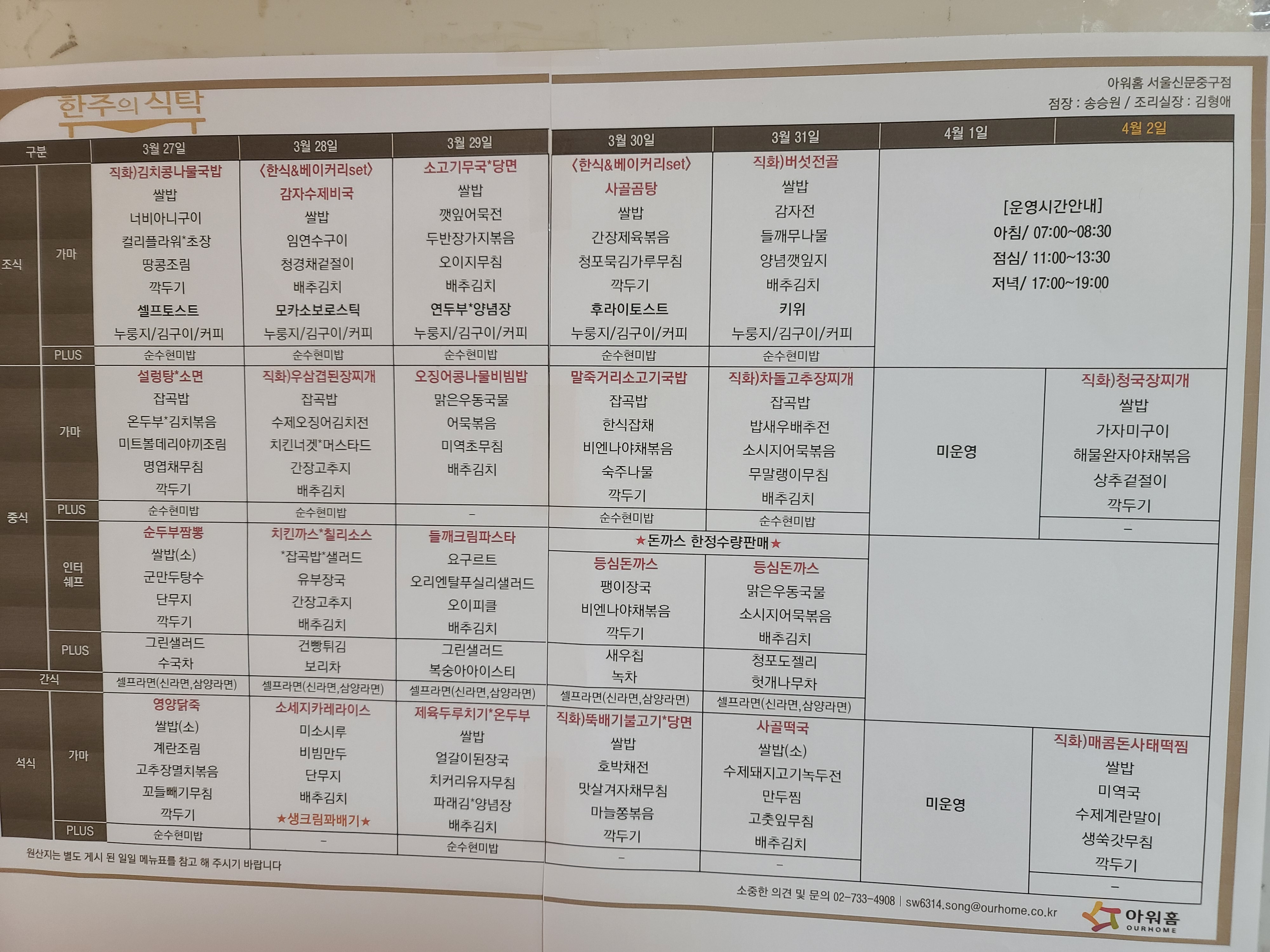 식당 입구에는 이런식으로 한 주의 메뉴판이 붙어있는데,