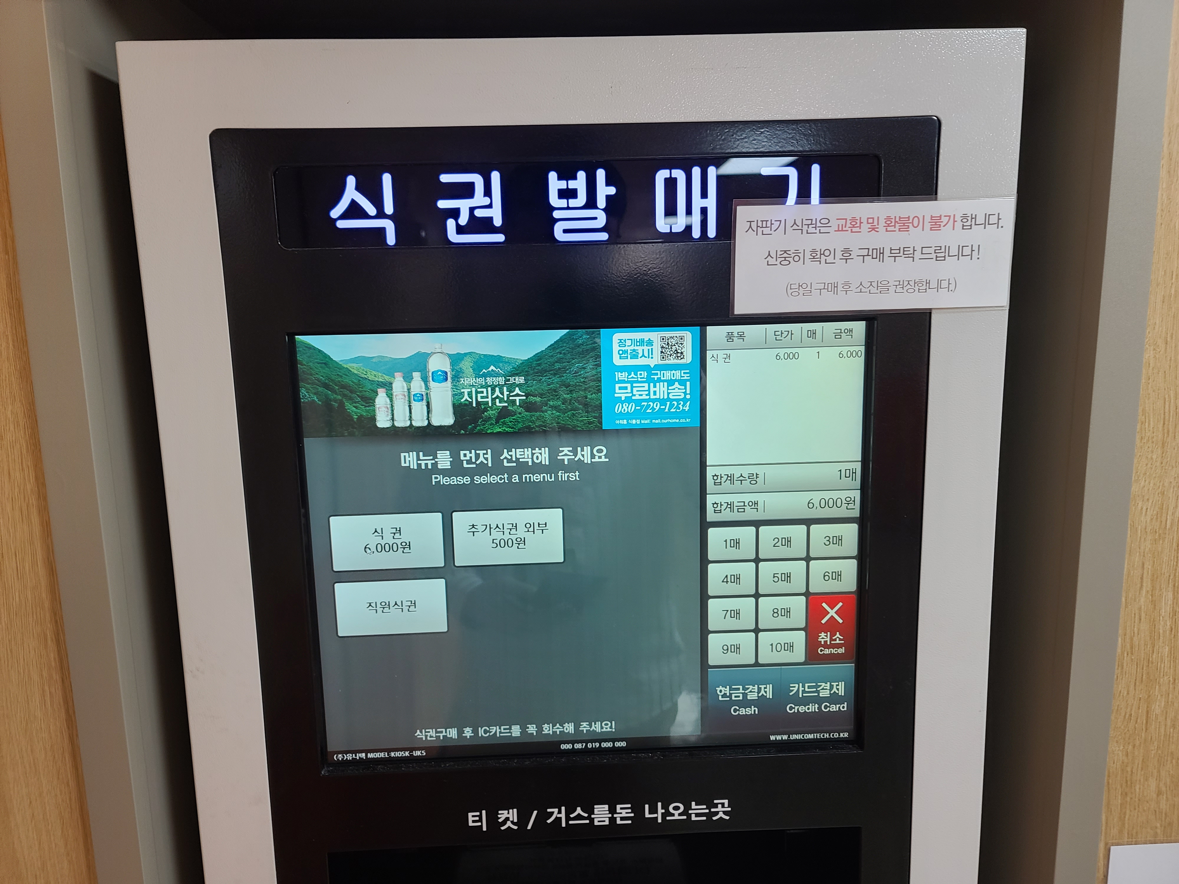 위 사진을 보시면 식권이 6,000원이라고 나와있는 것을 알 수 있습니다.