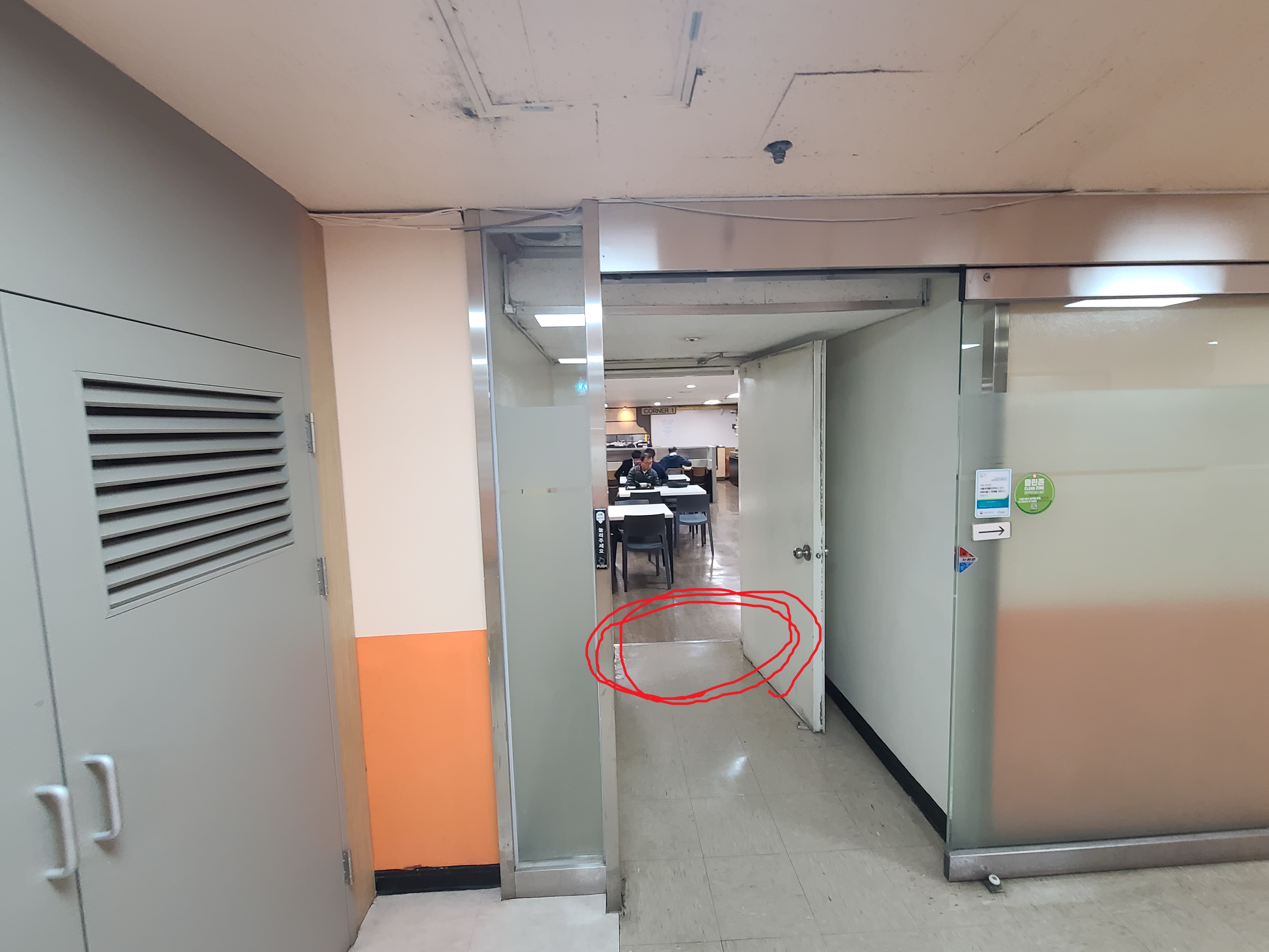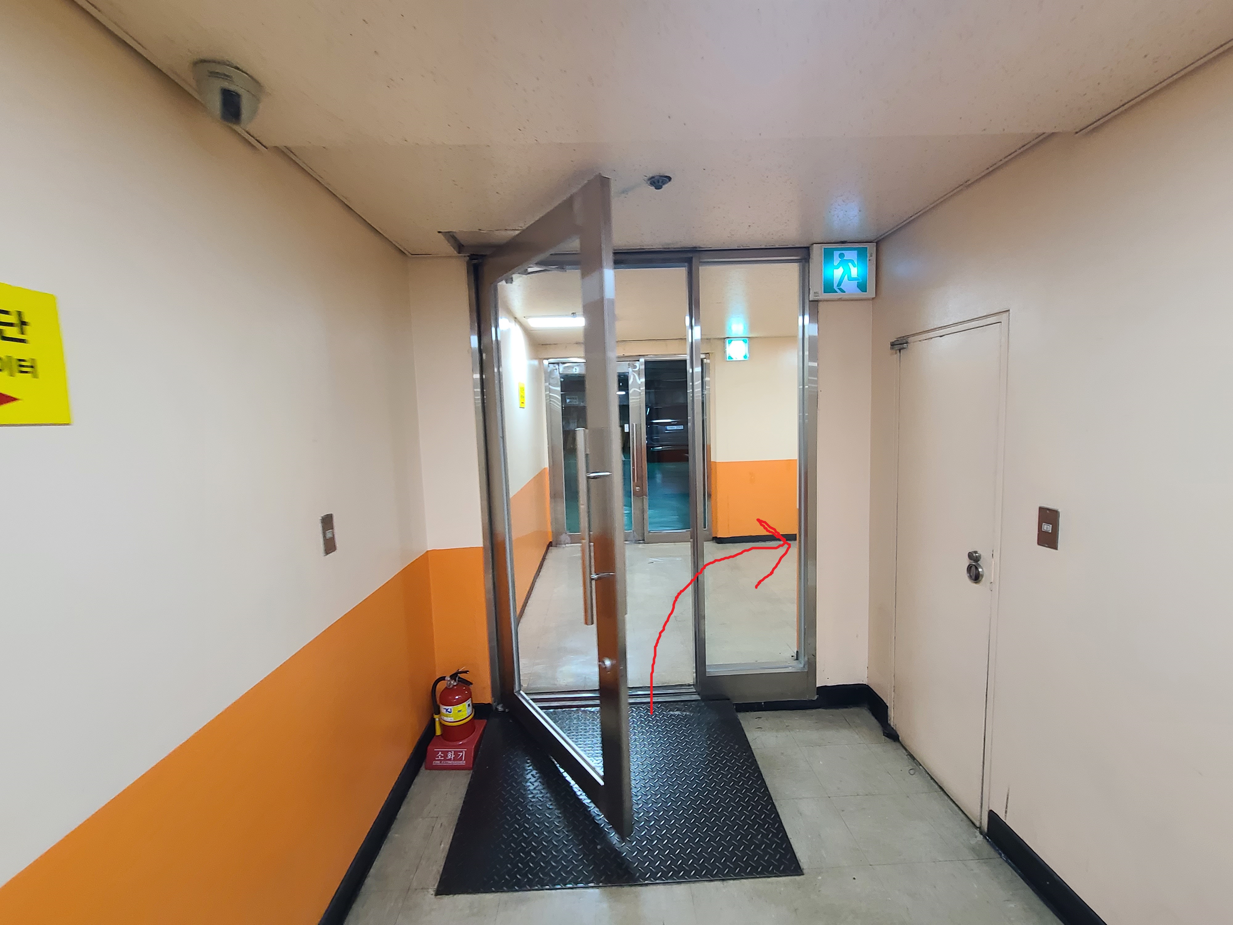 엘리베이터에서 내려서 주차장 방향쪽으로 가시면 이렇게 문이 하나 있을겁니다.