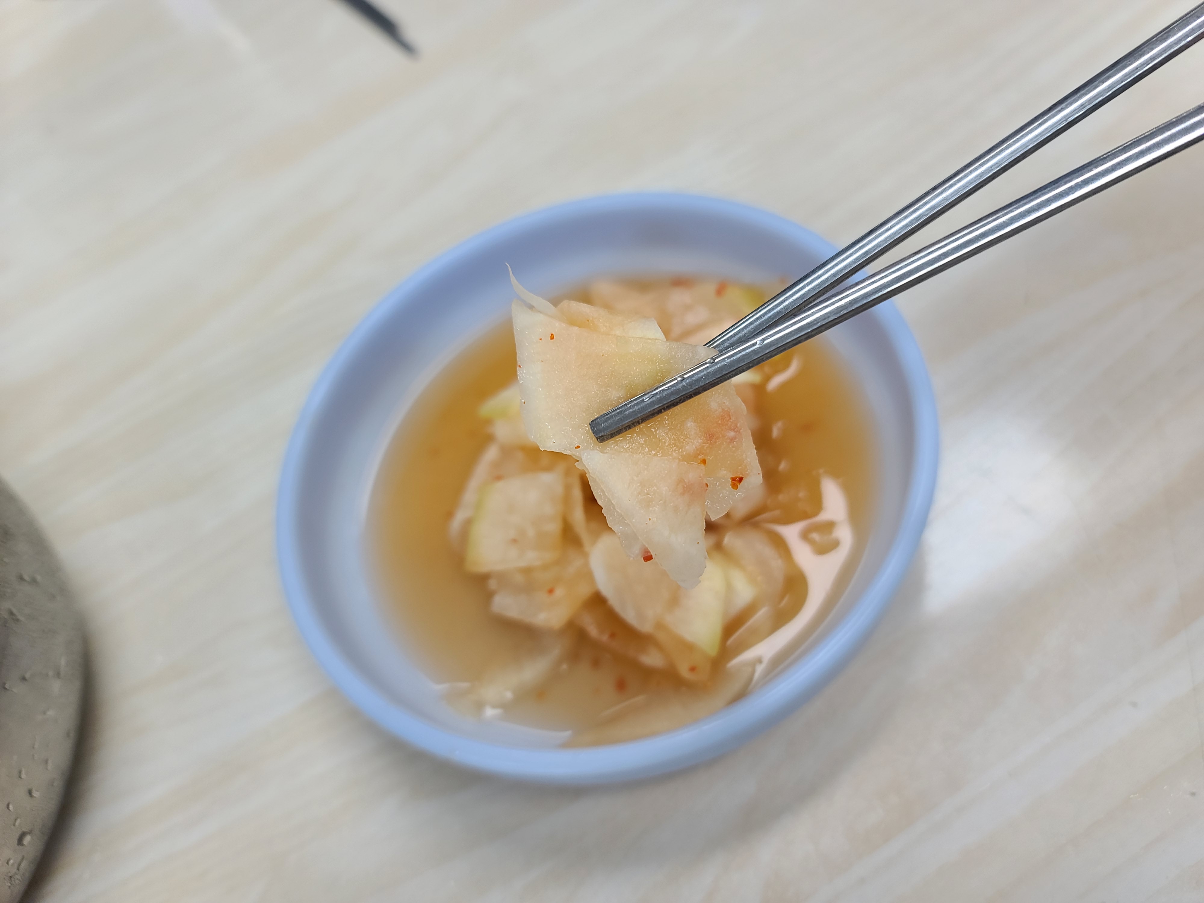 시원한 면음식에 자주 등장하는 무김치입니다.