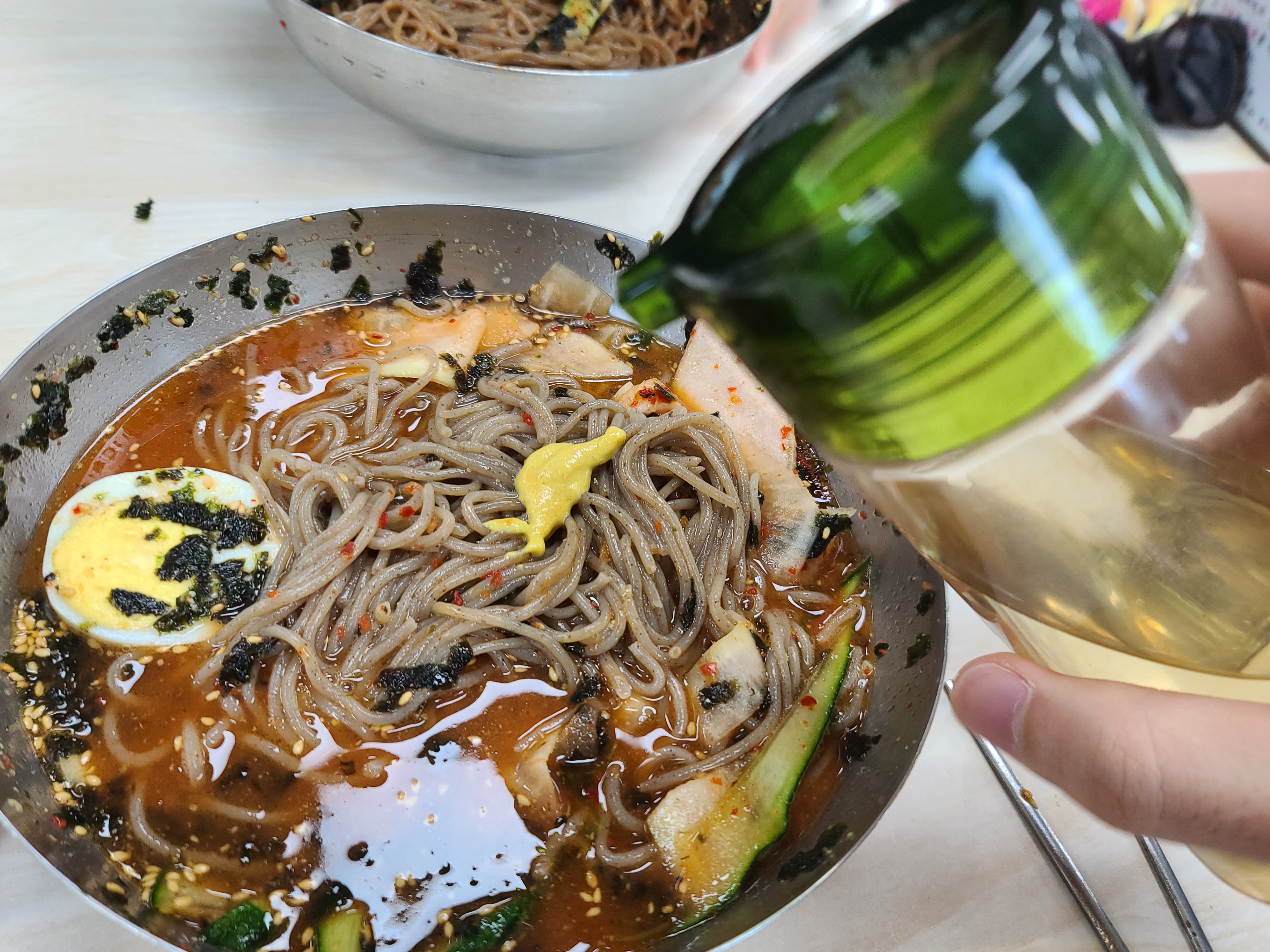 처음에는 겨자와 식초를 넣지 않고 막국수 그대로를 먹다가,