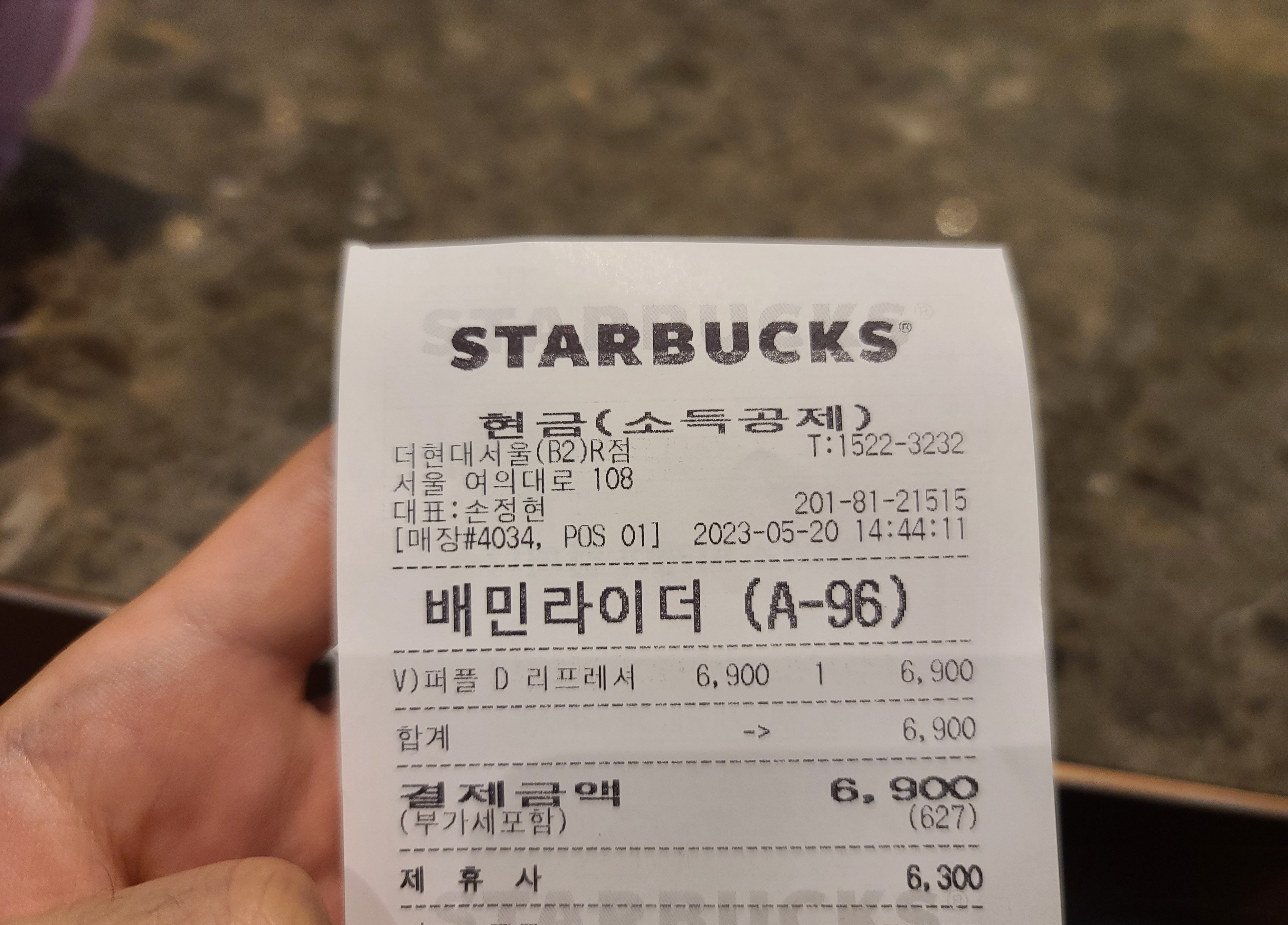 저는 더현대에 있는 스타벅스에서 음료를 주문했습니다.
