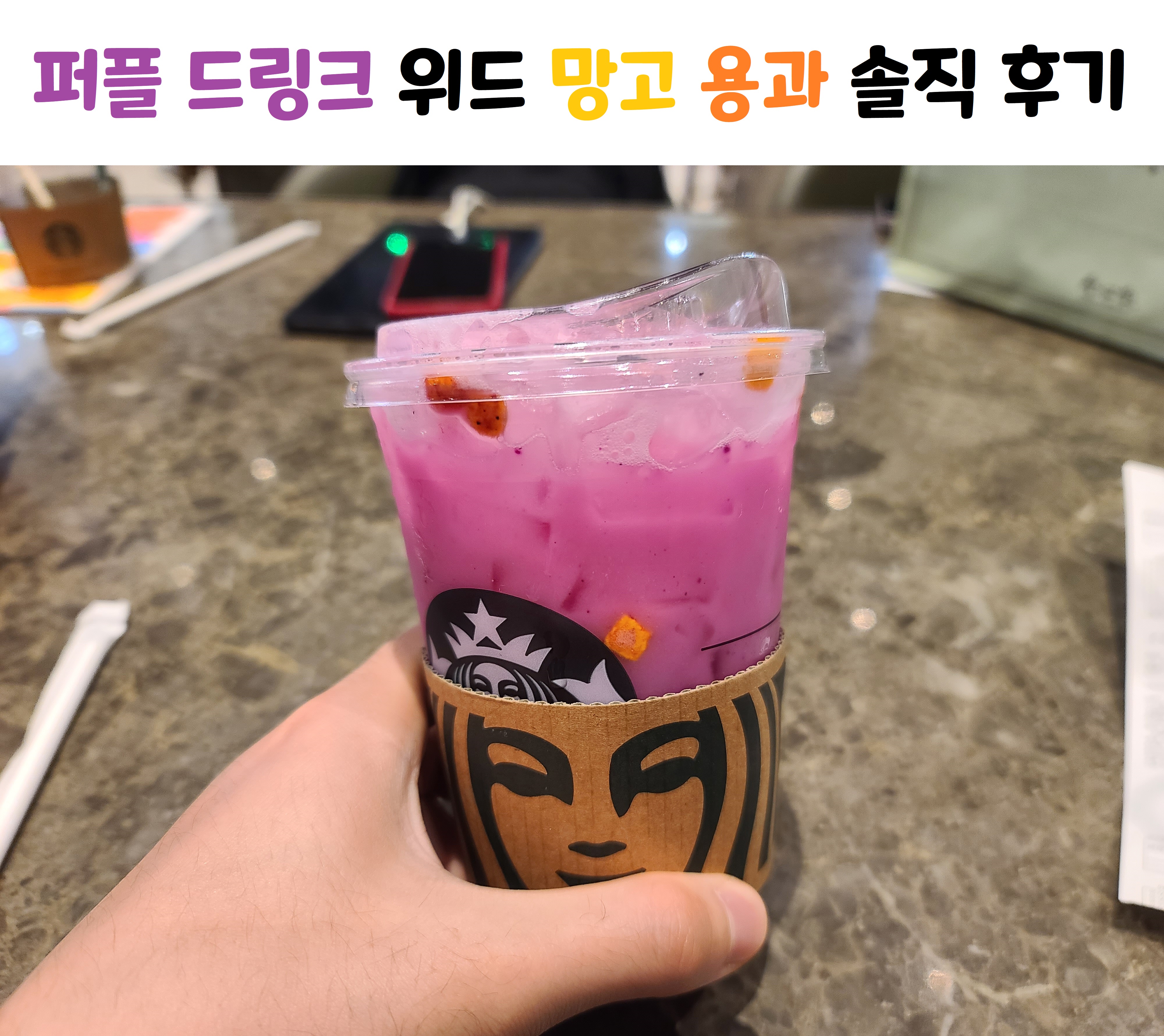 오늘은 스타벅스 신메뉴인 퍼플 드링크 위드 망고 용과 솔직 후기에 대해 말씀드려보도록 하겠습니다.
