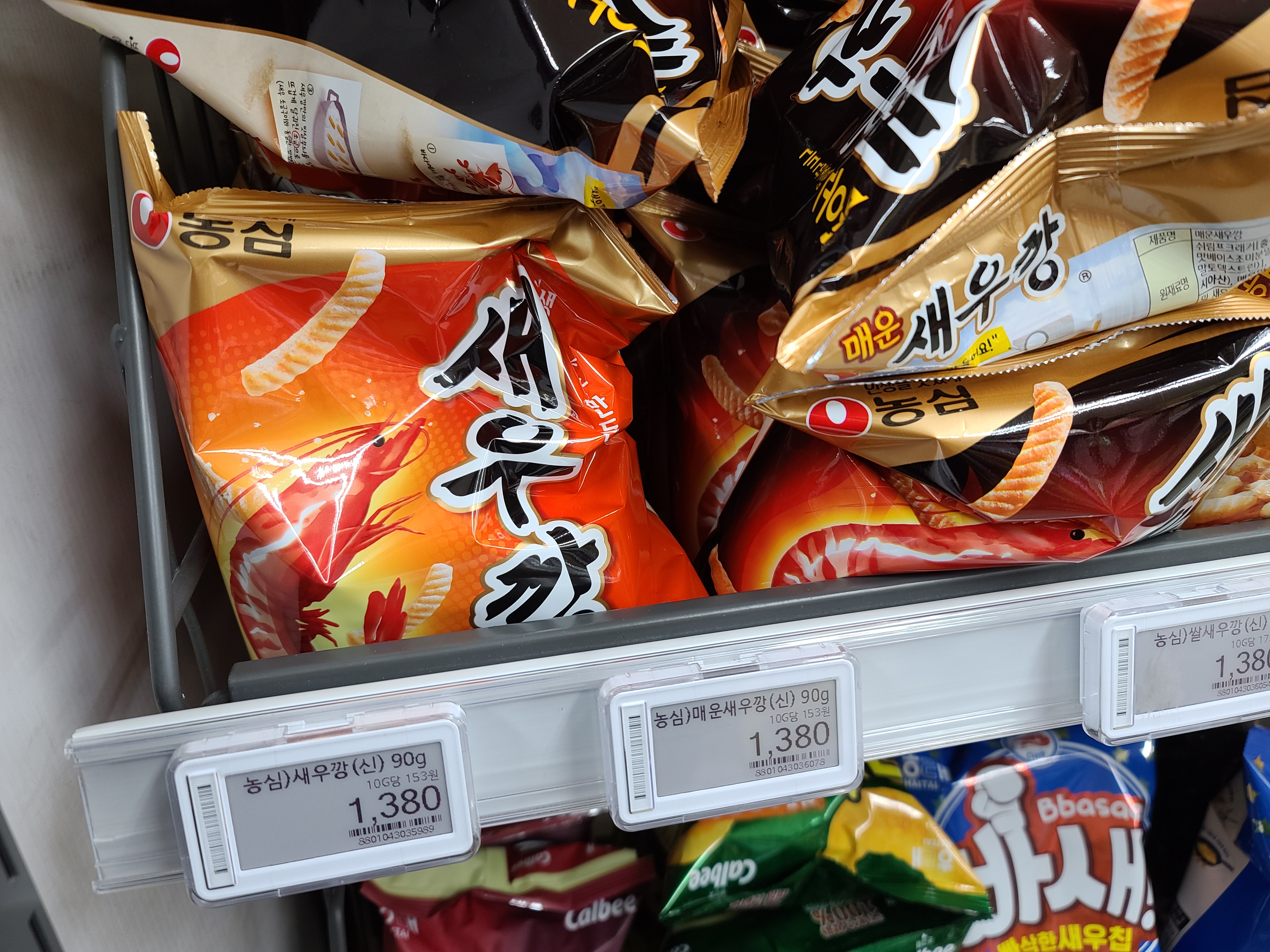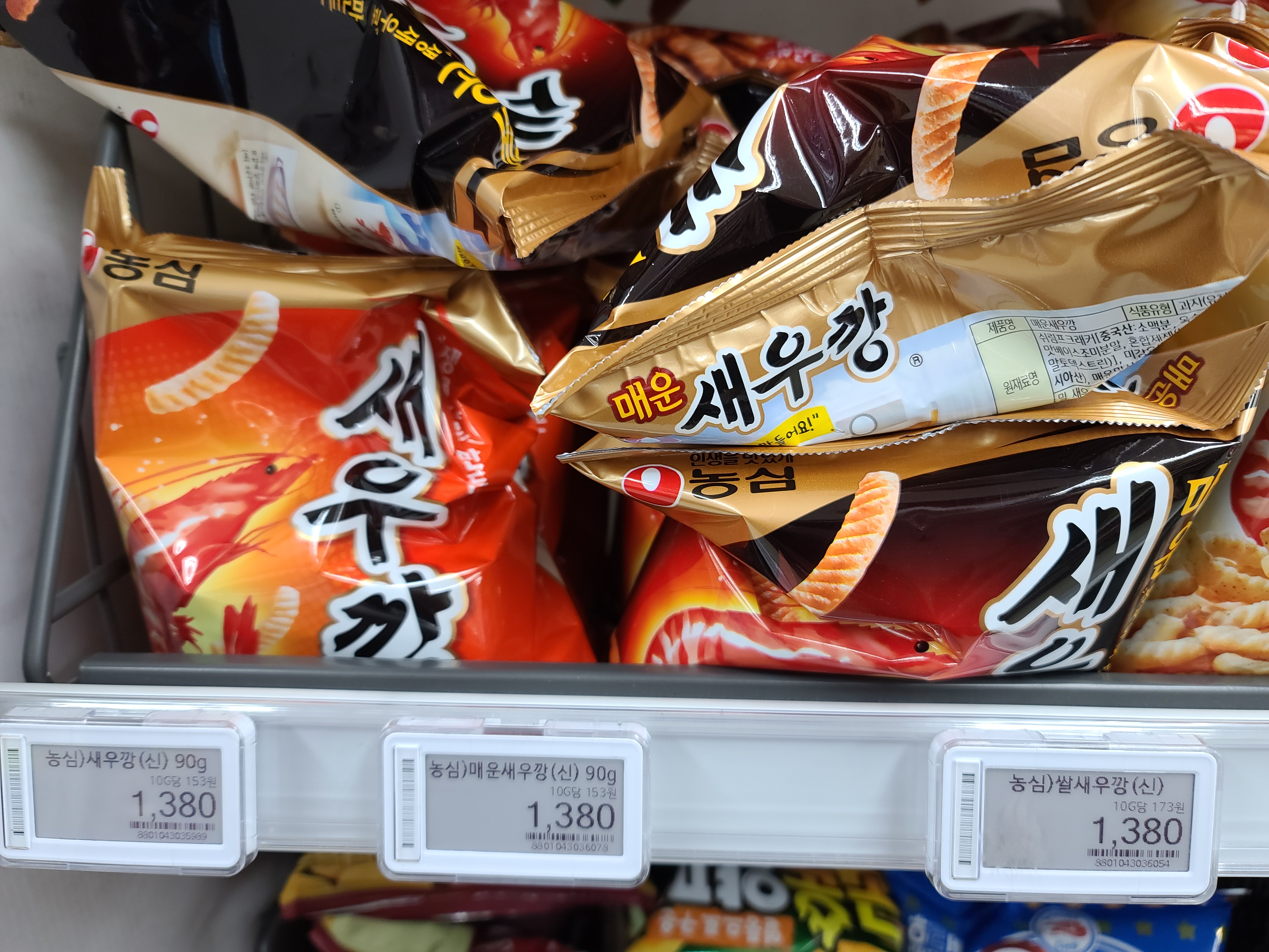 그리고 쌀새우깡도 있는데 쌀 새우깡도 역시 90g에 1,380원입니다.