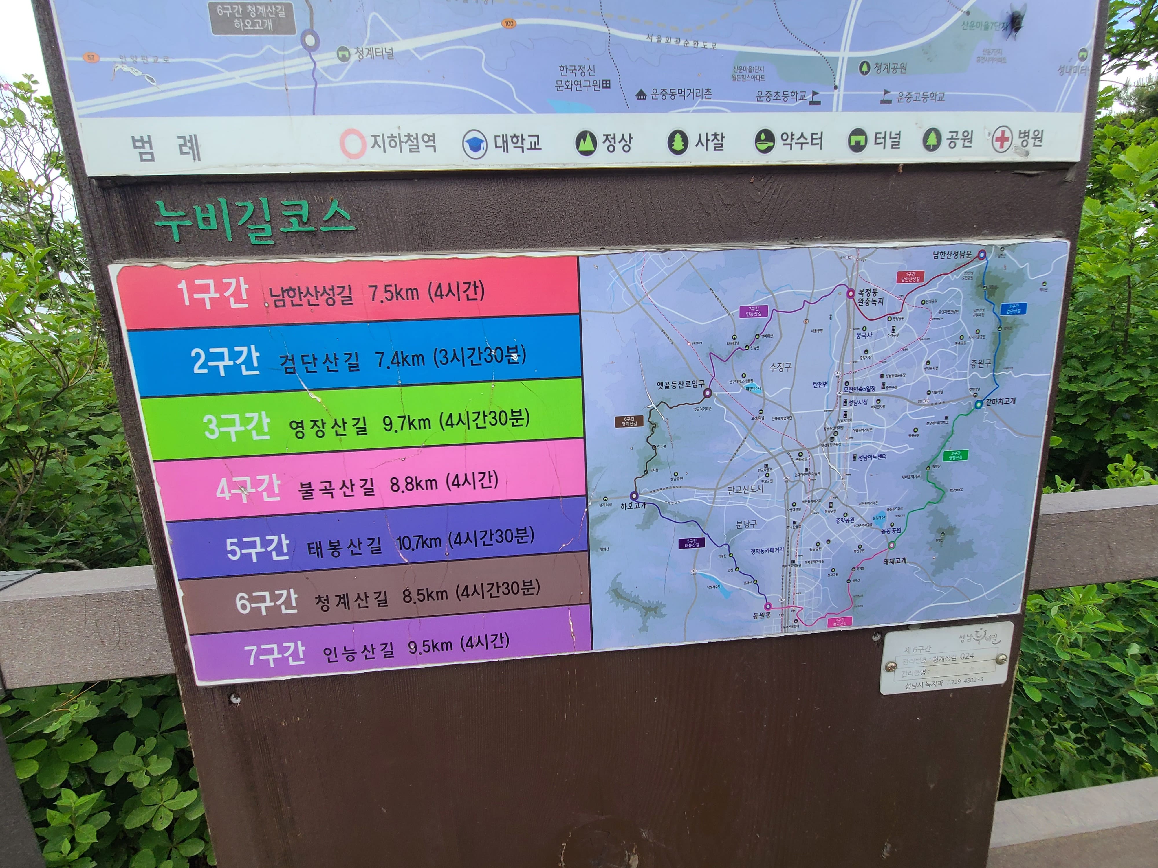등산로 입구가 강남 신분당선 바로 근처에 있어서 접근성이 좋고, 길도 잘 닦여있고, 2시간 올라간 것 치고는 경치도 매우 훌륭하지만 최단코스를 찾아가기가 조금 힘들다.