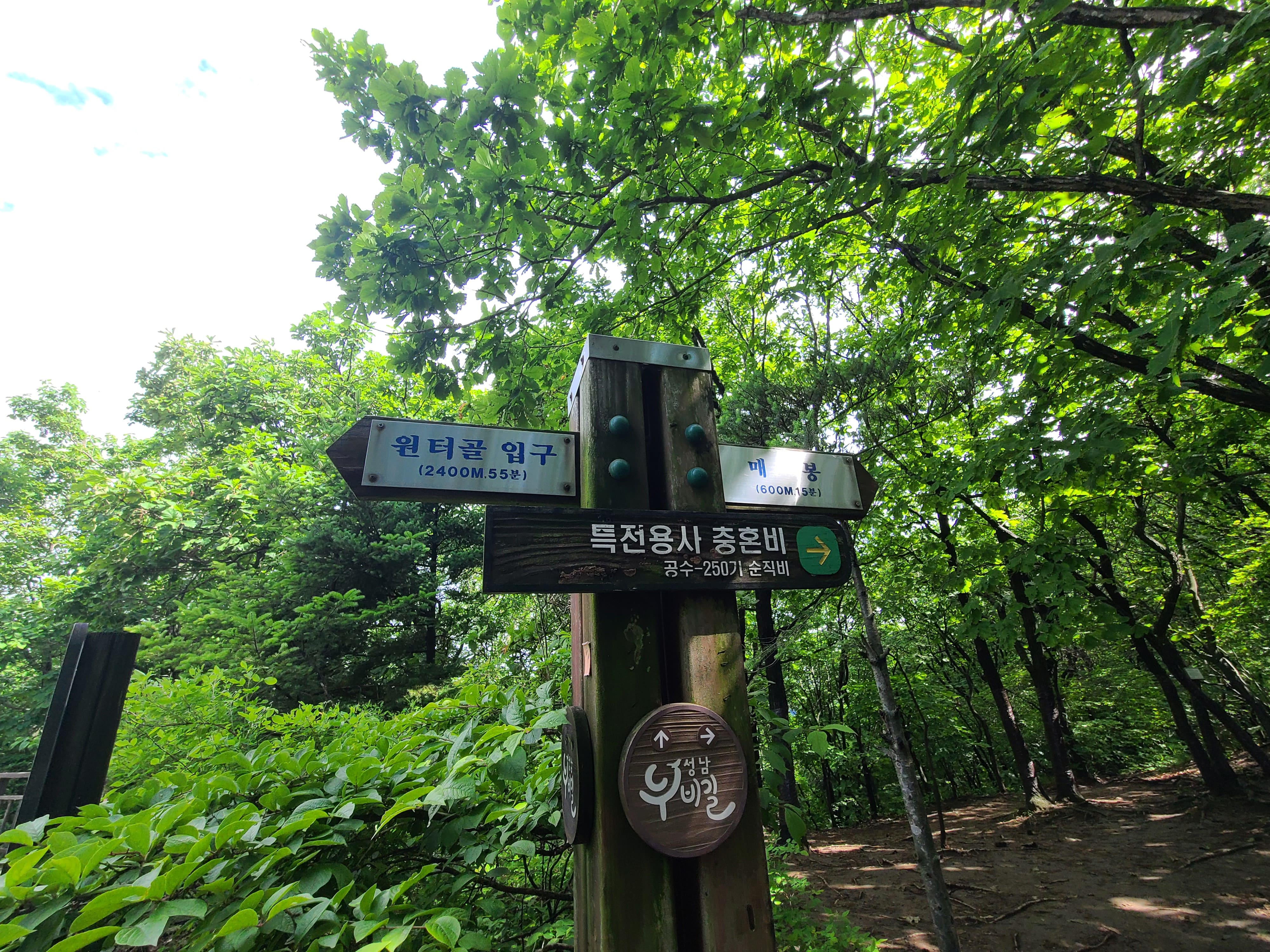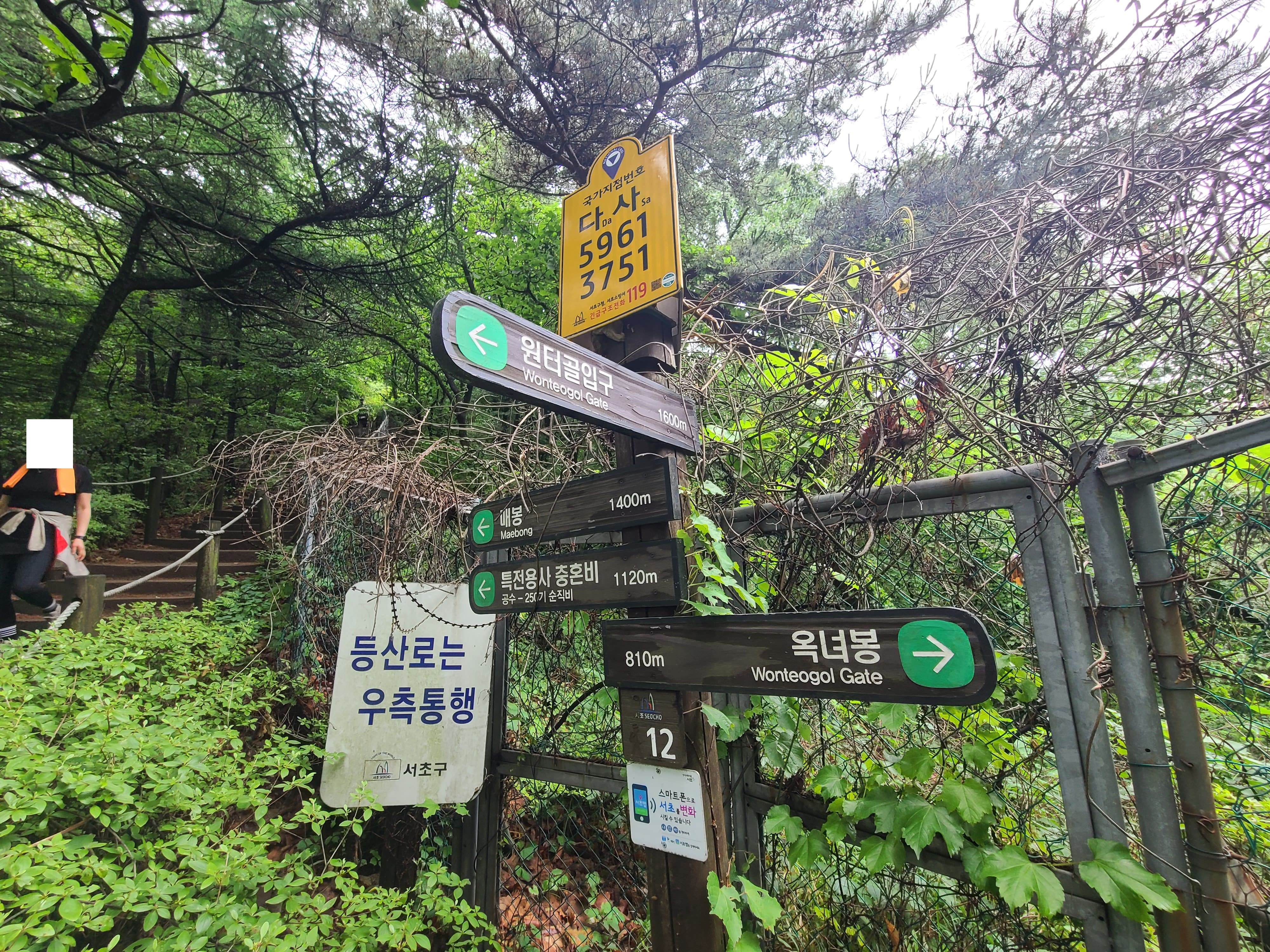 하산할 때에는 원터골 입구쪽으로 내려가주시면 됩니다.
