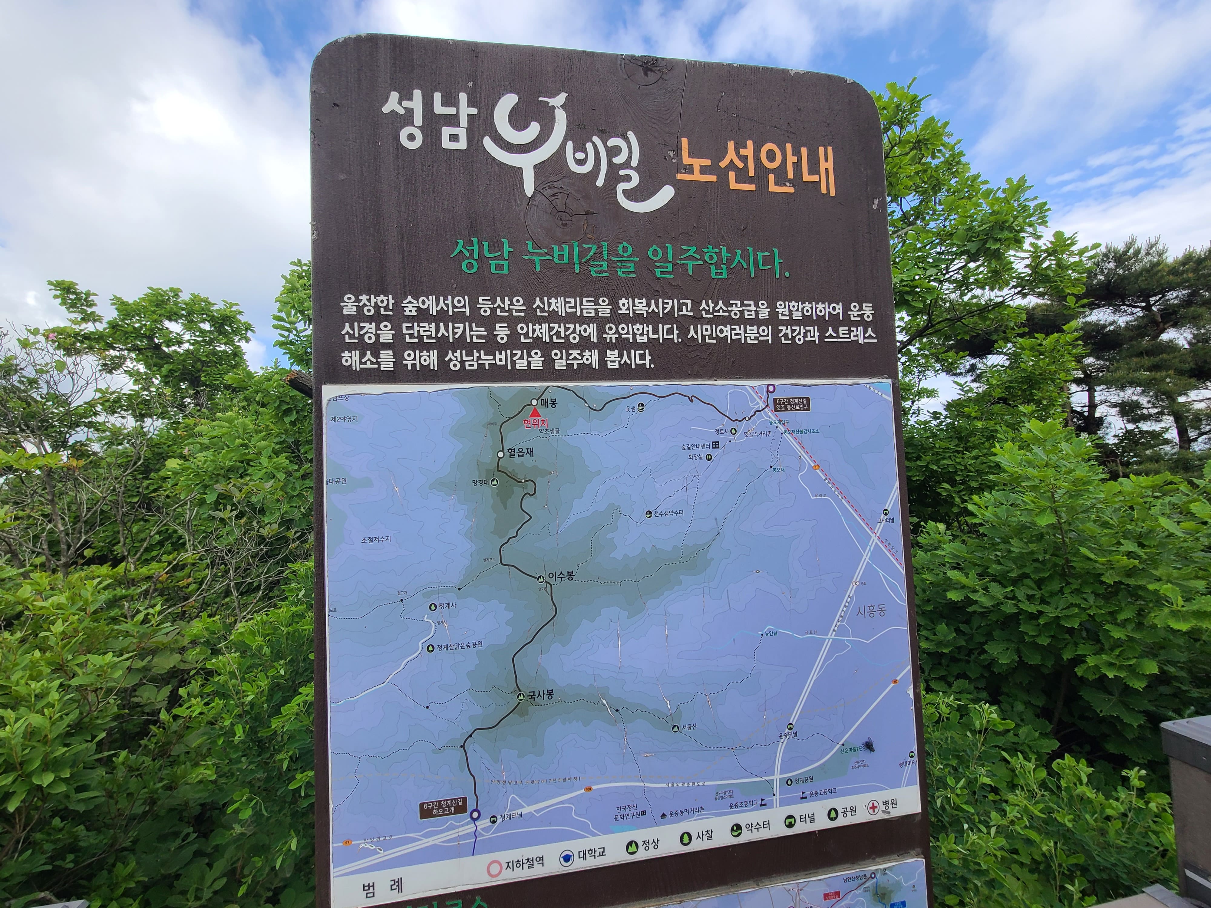 성남 누비길과 관련된 지도가 나와있는데 이것만 봐서는 어디가 어딘지 잘 모르겠습니다.