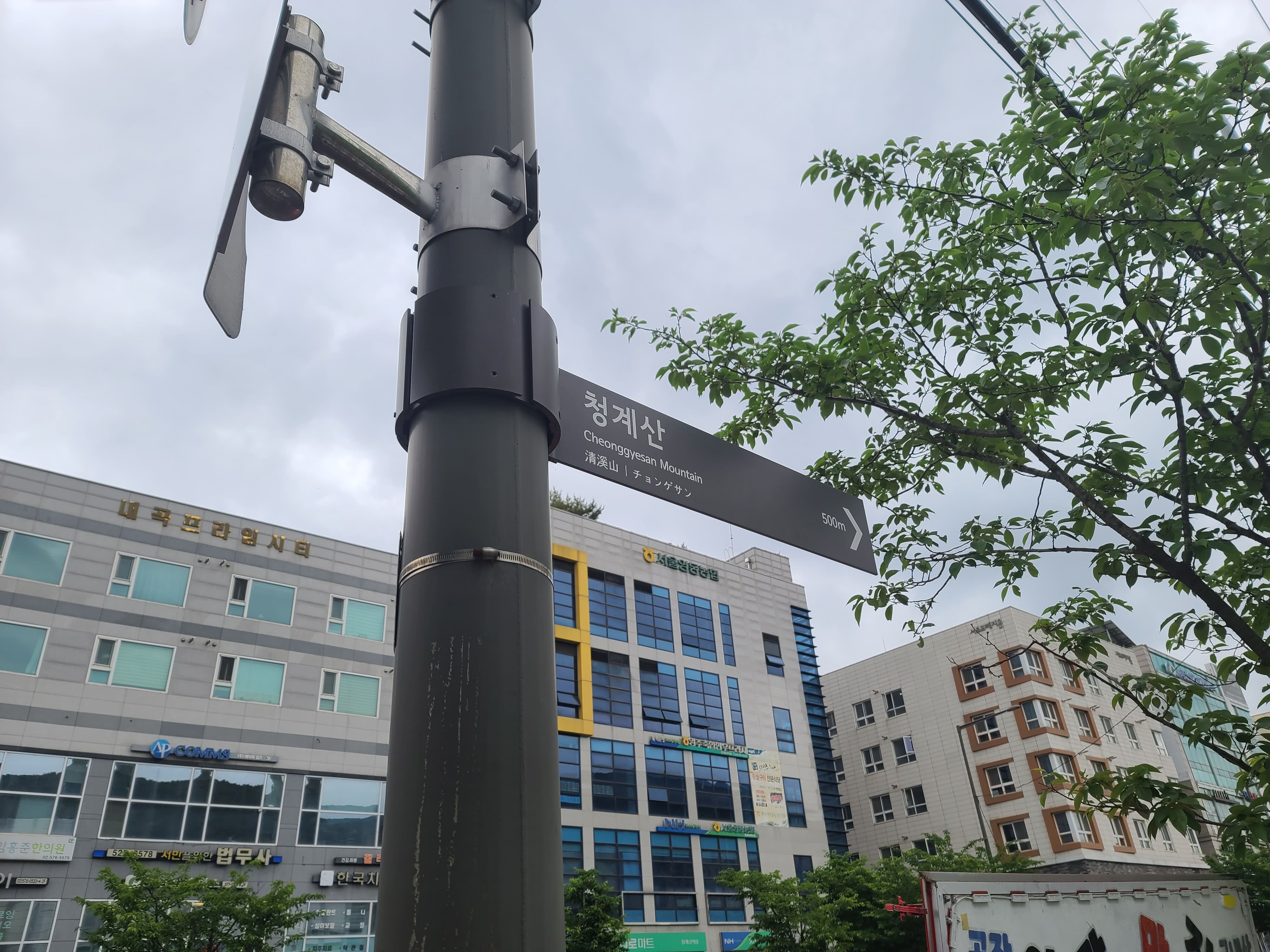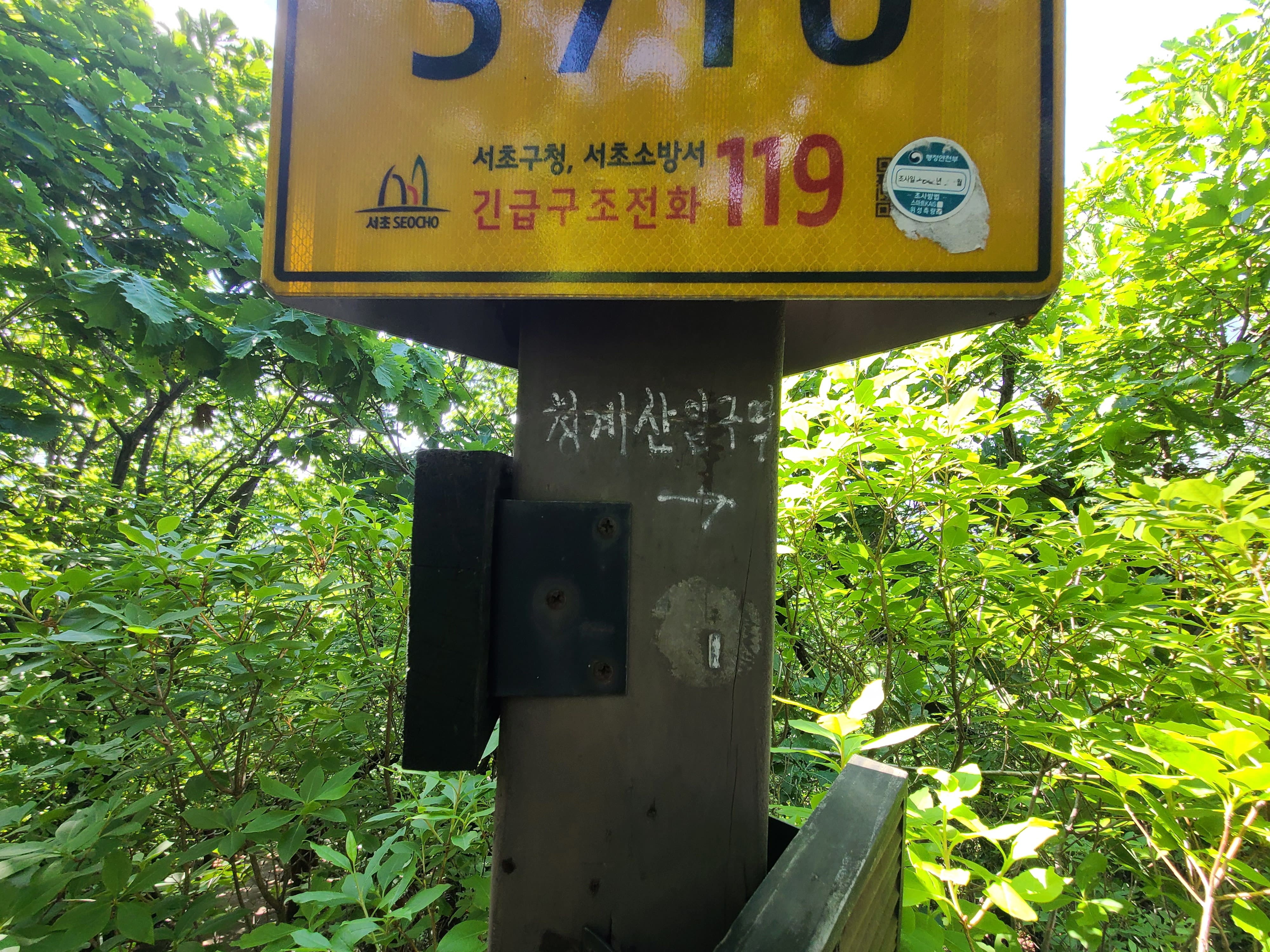 그런데 누군가 친절하게 청계산 입구역 방향이라고 흰색 글씨로 적어놓으셨군요.