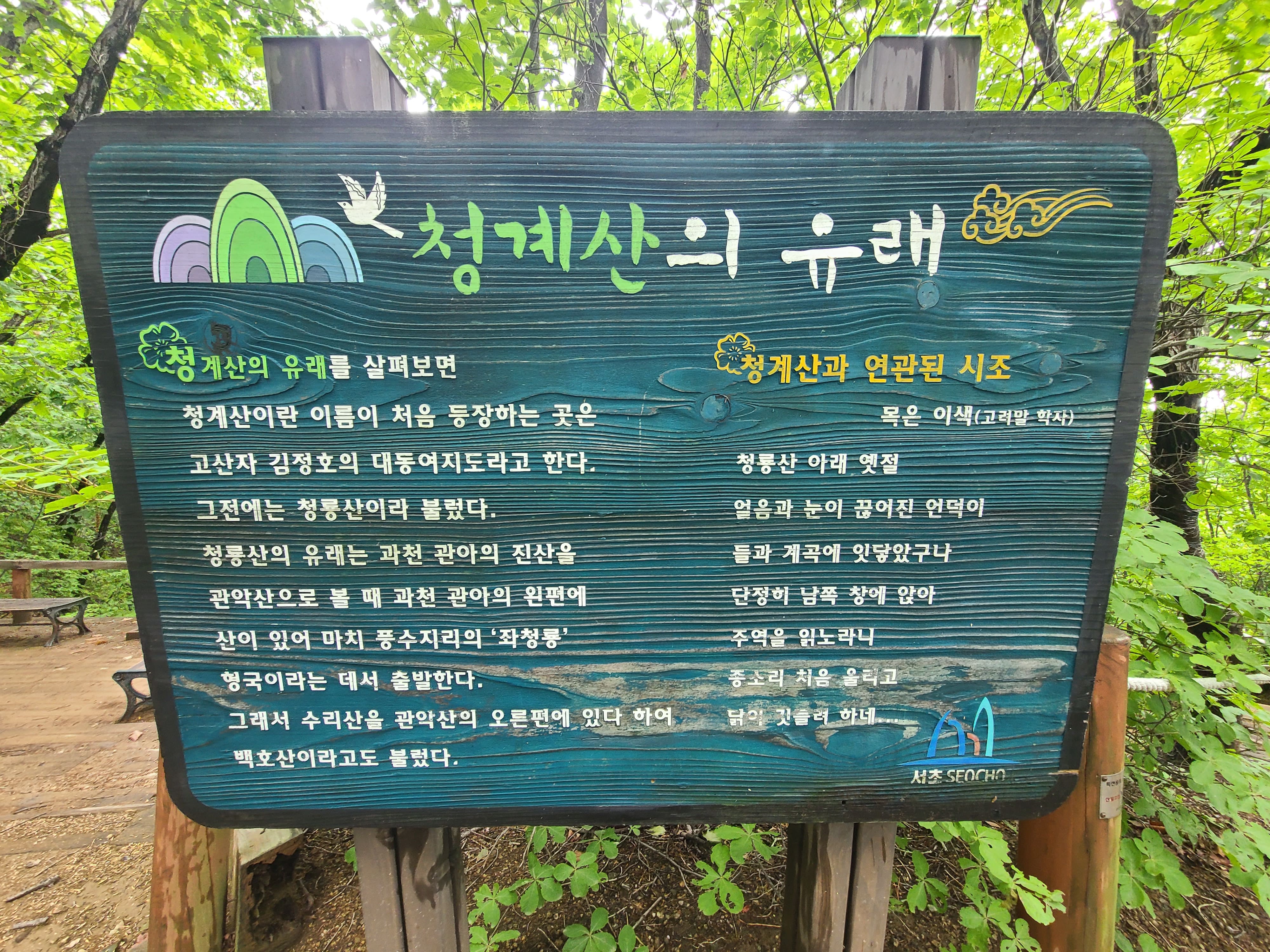 청계산의 의미가 적힌 표지판이 나왔군요.