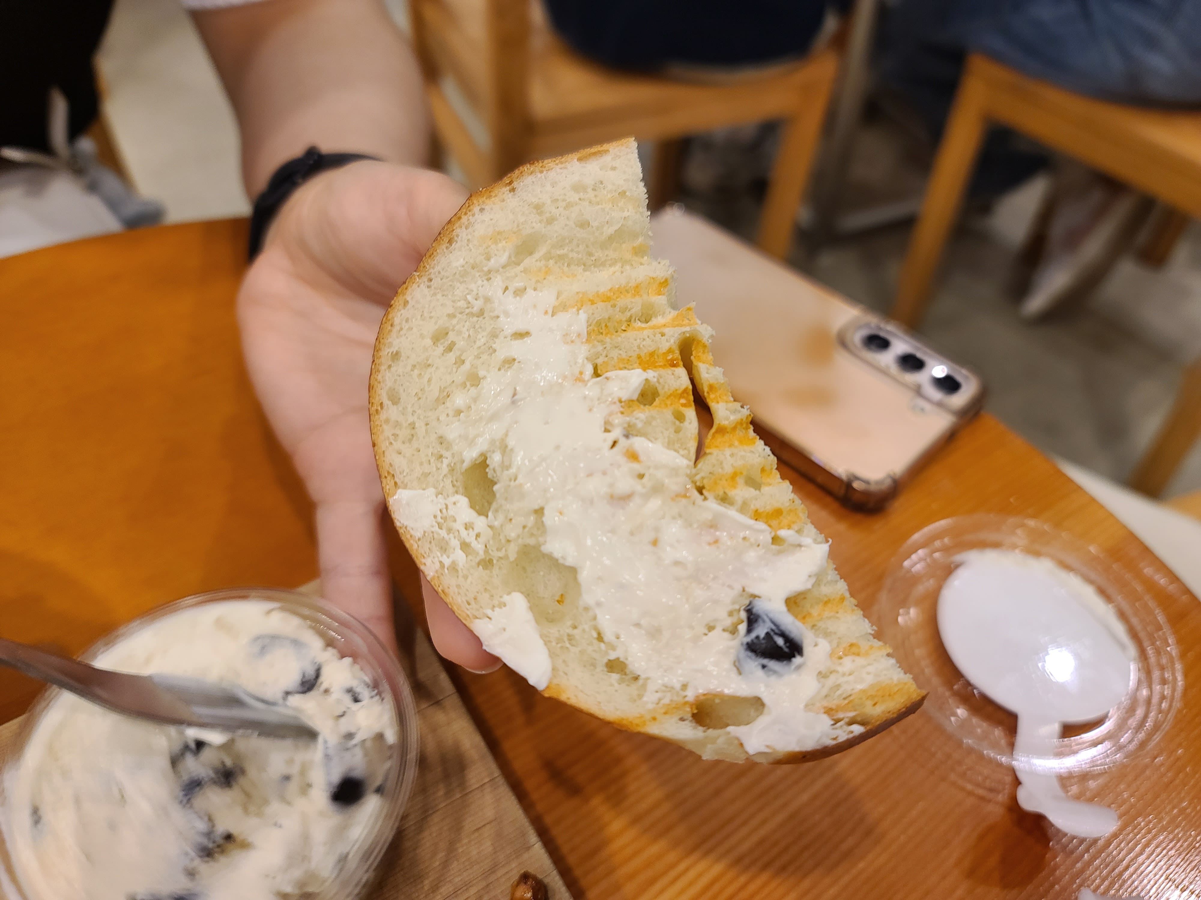 제가 직접 플레인 베이글에 블랙 올리브 크림치즈를 발라서 먹어본 결과,