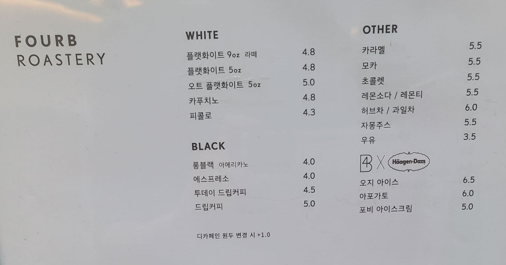 음료 가격의 기본이 되는 포비 베이글의 아메리카노 가격은 4,000원이니 참고하시면 되겠습니다.