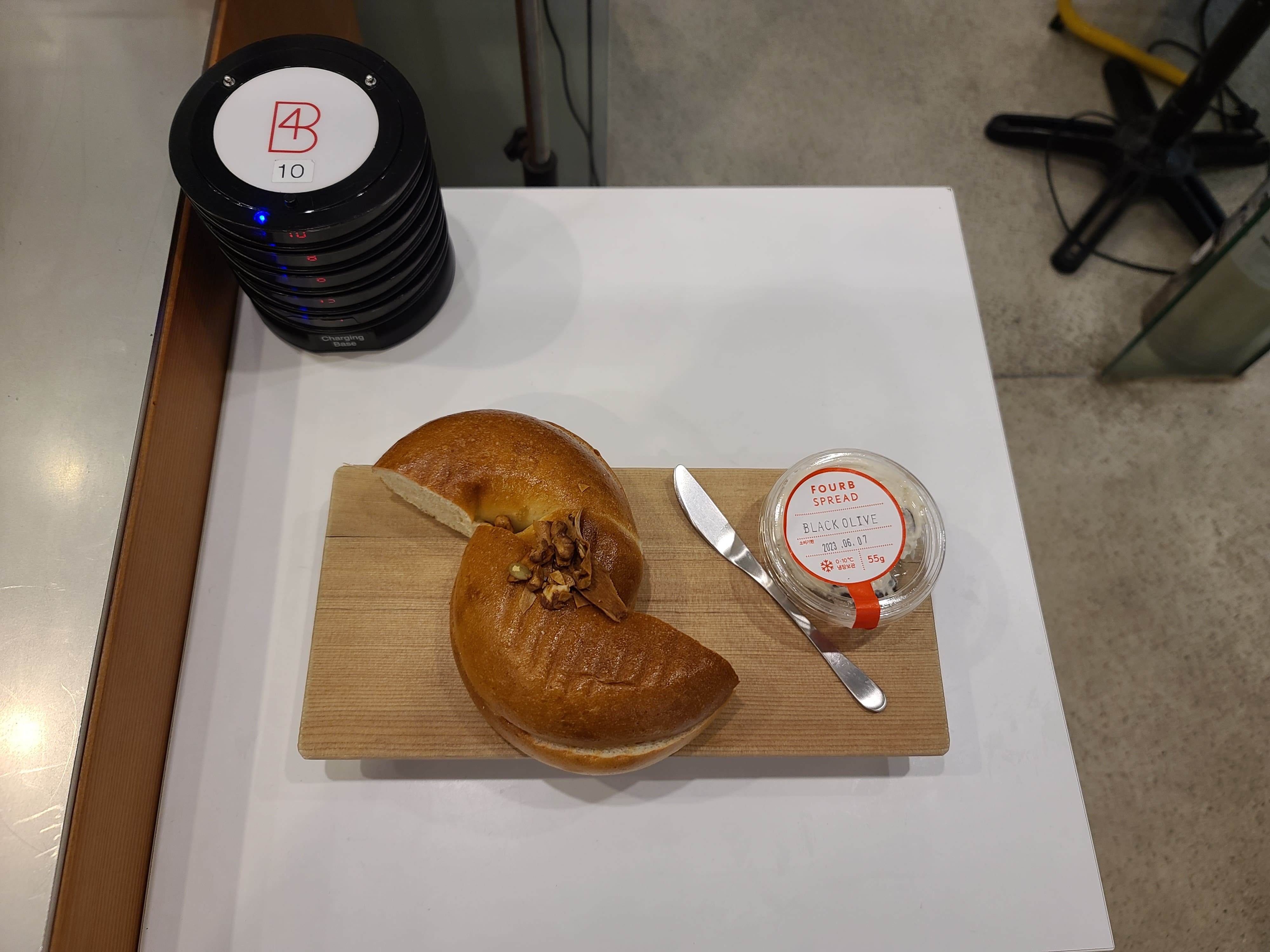 저는 플레인 베이글과 블랙올리브 크림치즈를 주문했습니다.