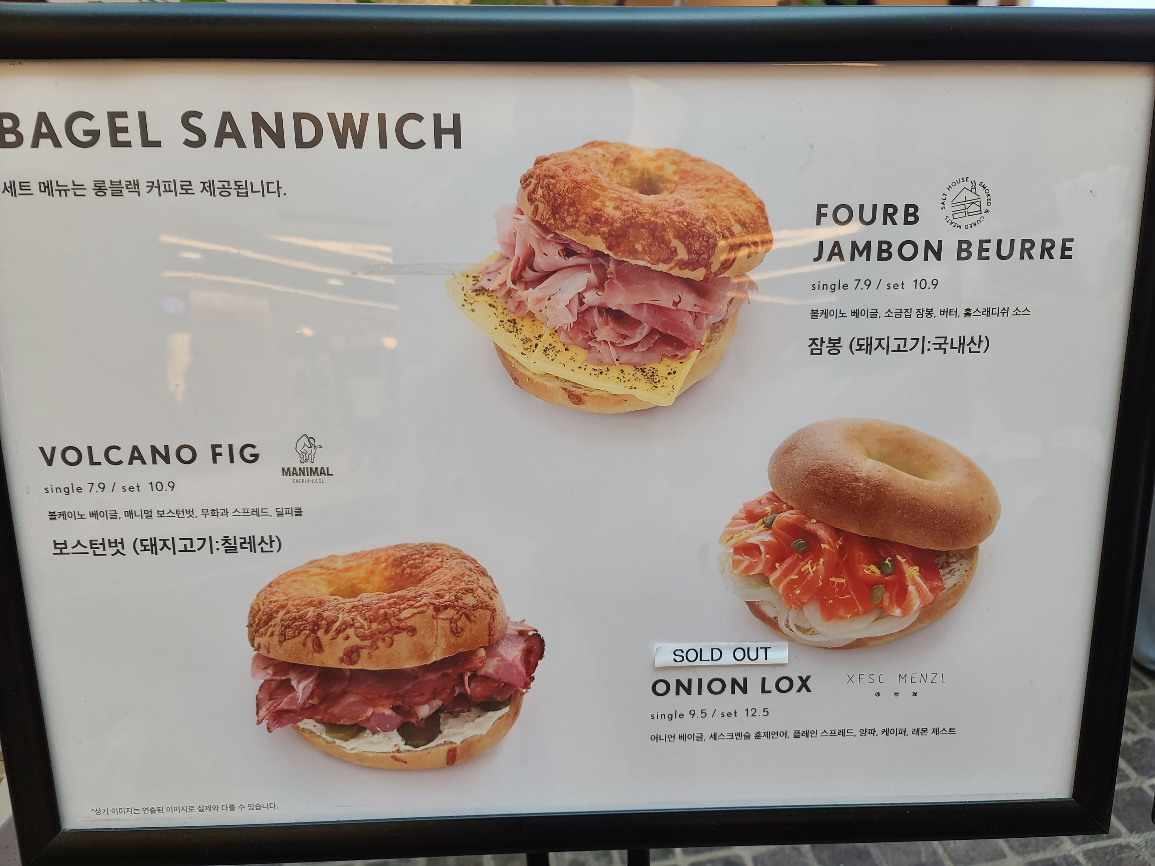 제가 포비 베이글에 방문했을 때에는 어니언럭스 샌드위치가 품절이었습니다.