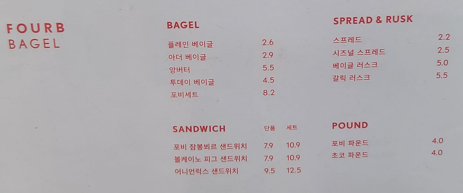 지금까지 서울 베이글 맛집 포비 베이글의 위치와 내외부 모습을 살펴봤으니 이제 본격적으로 여러분들이 궁금해하실 포비 베이글의 메뉴를 보여드리도록 하겠습니다.