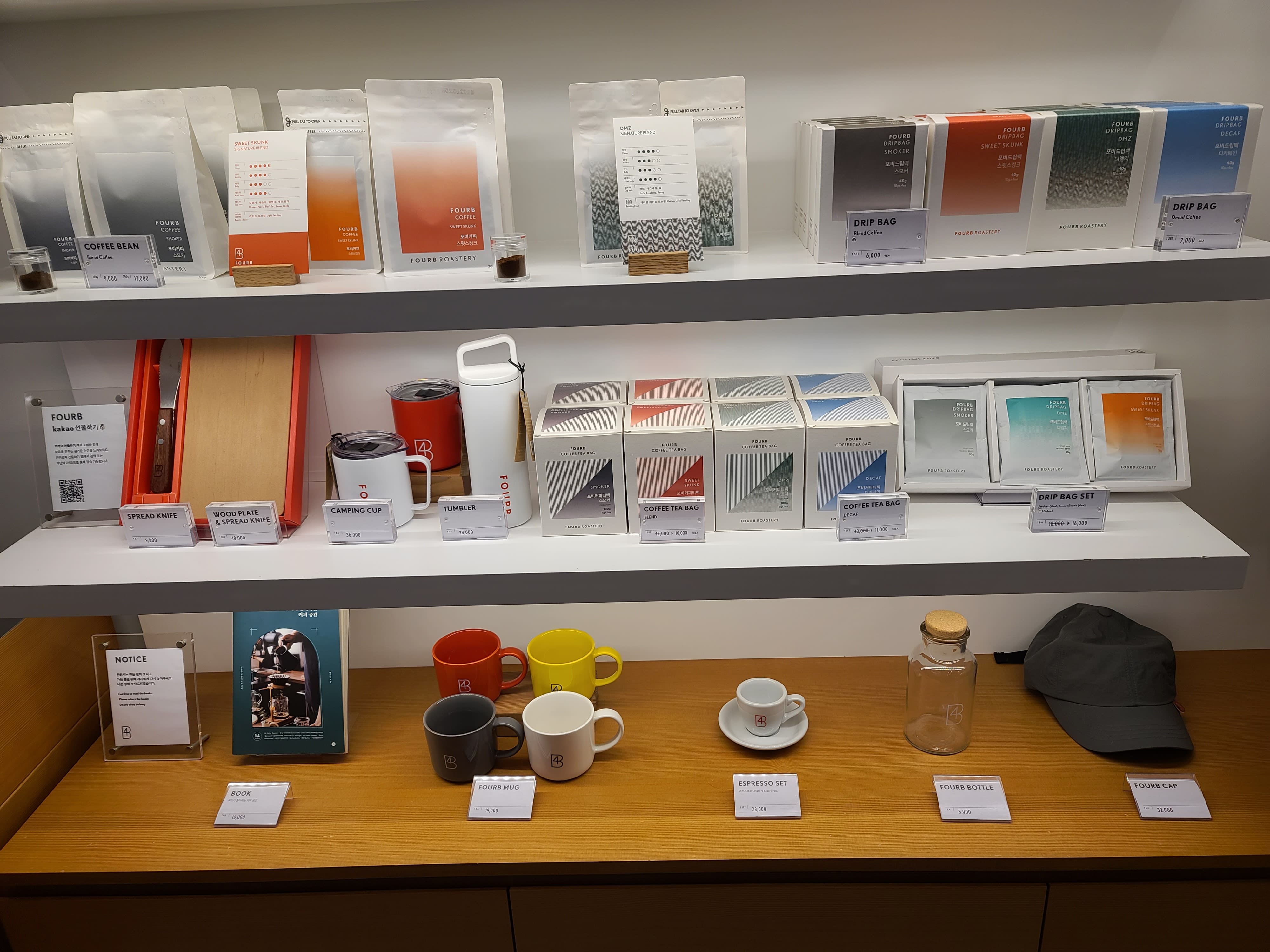 마지막으로 옆쪽에서는 이런식으로 커피 원두와 굿즈를 판매하고 있었습니다.