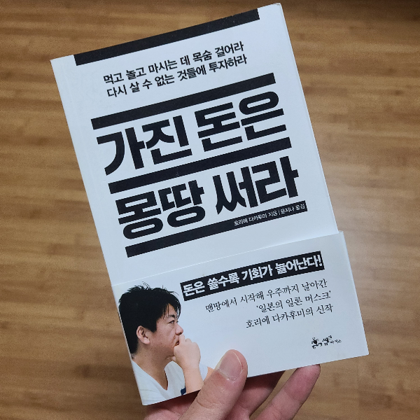 현재 29살의 나이로 30살을 1년도 채 남기지 않은 내가 20대에게 추천해주고 싶은 책 '가진 돈을 몽땅 써라'. 제목부터 벌써 자극적이다. 하지만 그만큼 20대인 나에게 뒷통수를 야구방망이로 강하게 후려맞은 듯한 신선한 충격을 준 책이기도 하다.