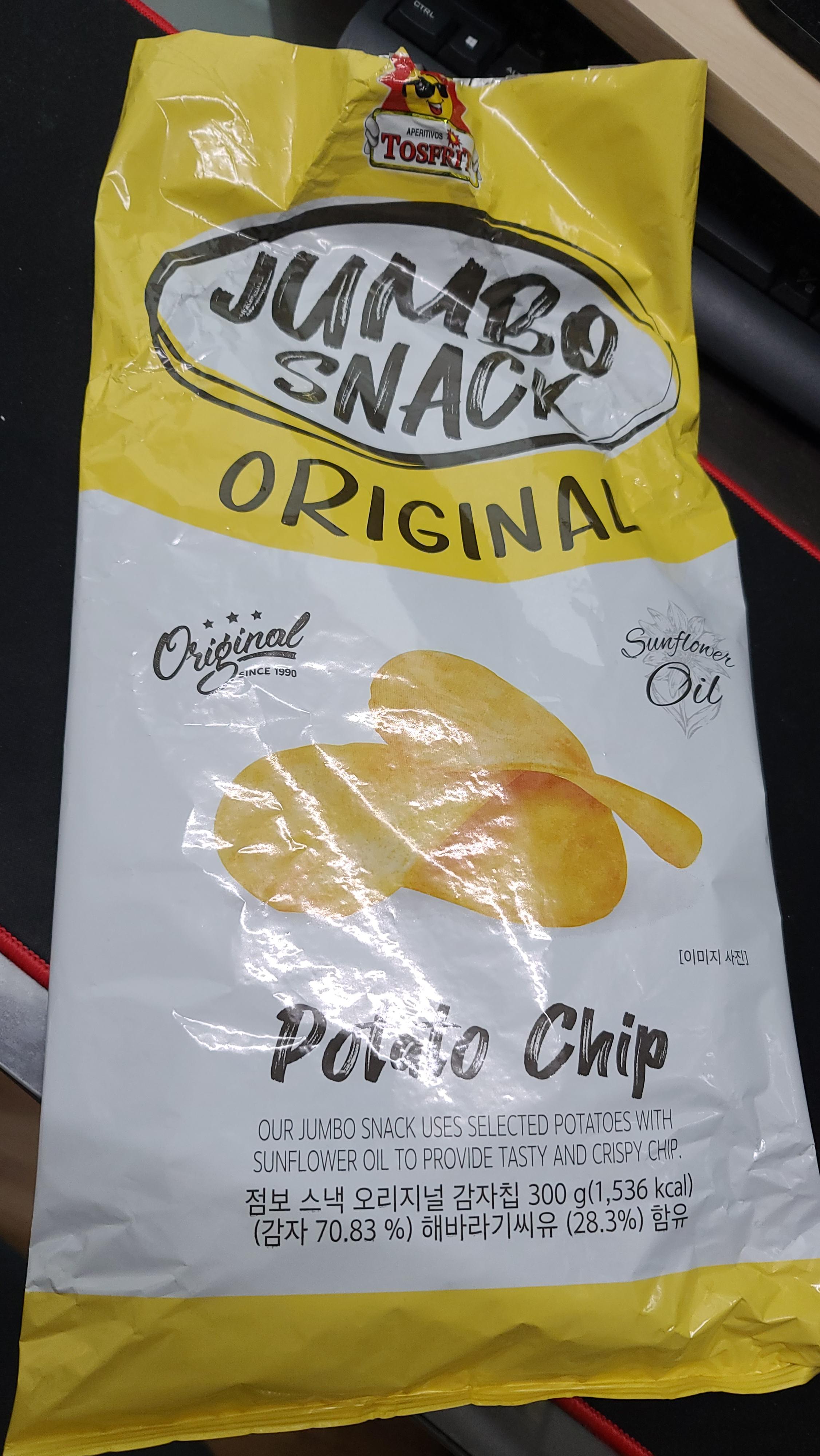 포카칩은 살짝 감자칩의 밀도가 높은 반면에, 이 노브랜드 점보 오리지널 감자칩은 밀도가 살짝 아쉽습니다.