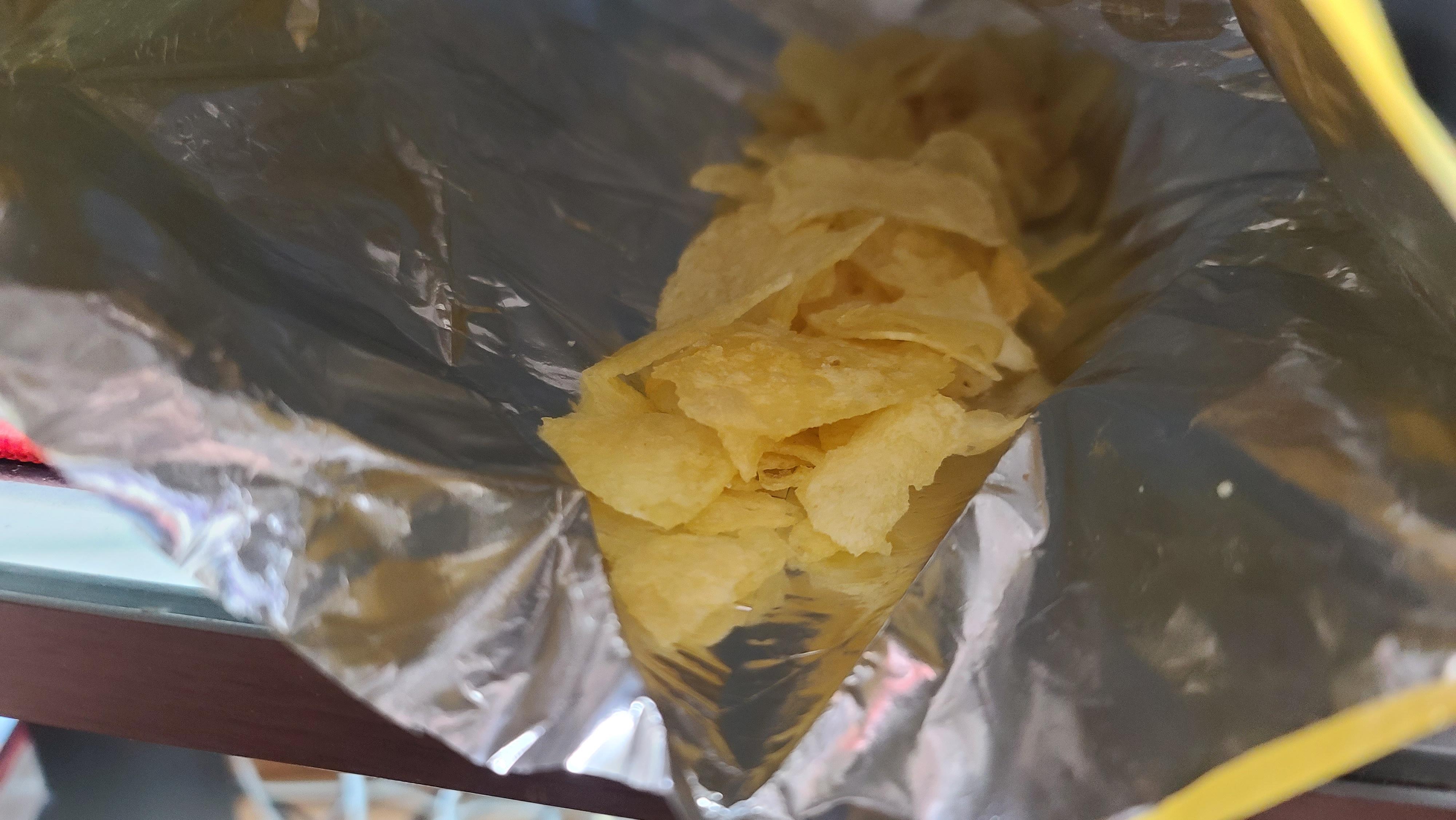 이게 포장지는 엄청 길고 큰데 안에 질소가 많이 들어있어서 생각보다 안에 감자칩은 그다지 많이 들어있지는 않습니다.