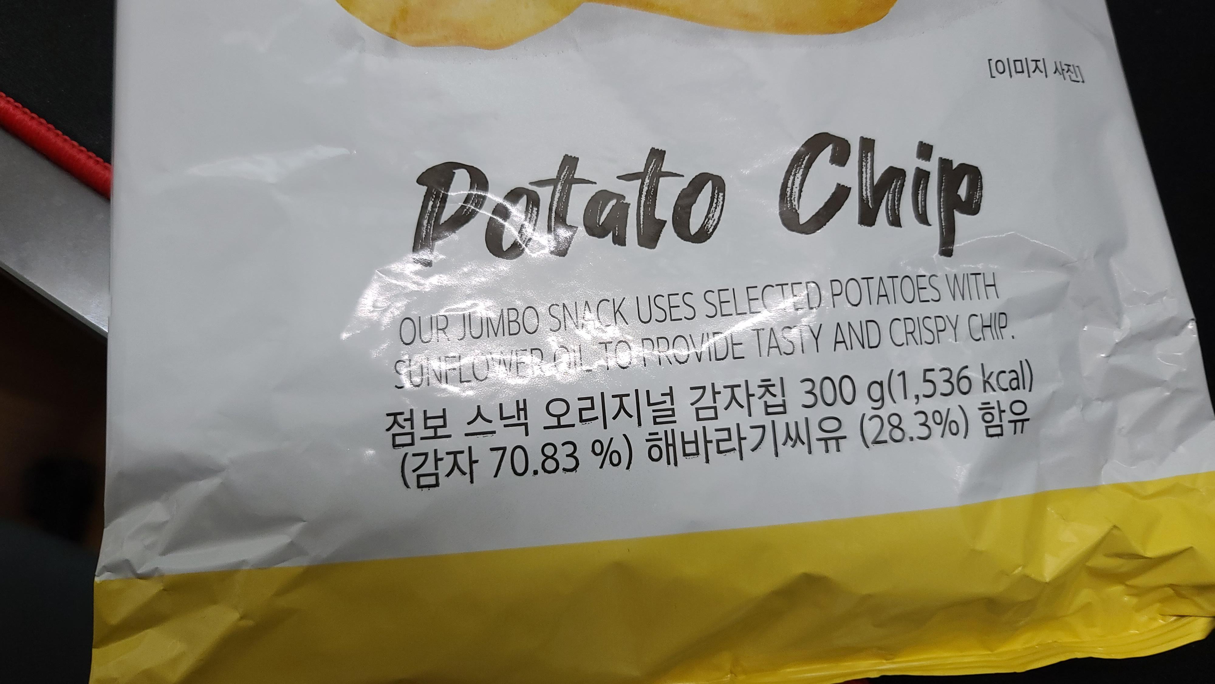 포카칩은 살짝 감자칩의 밀도가 높은 반면에, 이 노브랜드 점보 오리지널 감자칩은 밀도가 살짝 아쉽습니다.