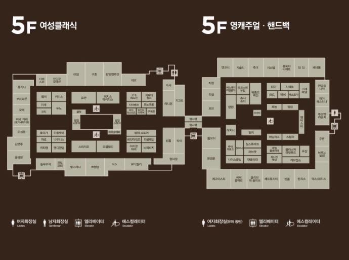 이 신세계 백화점 강남점 5층으로 가시면 여성 의류와 핸드백 및 가방을 파는 곳이 한 곳에 모아져 있습니다.