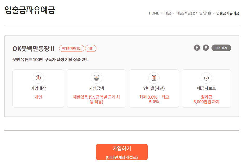 OK저축은행의 파킹통장인 OK읏백만통장 2입니다.